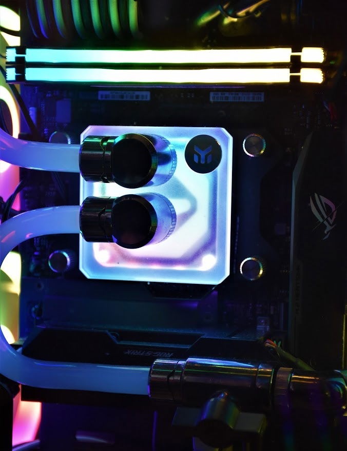 I've used theTK220 V2 from byski for this build and i'm really happy with the result. 1 out and 2 in + 1 drain, DRGB, DDC pompe, thermal sensor,...