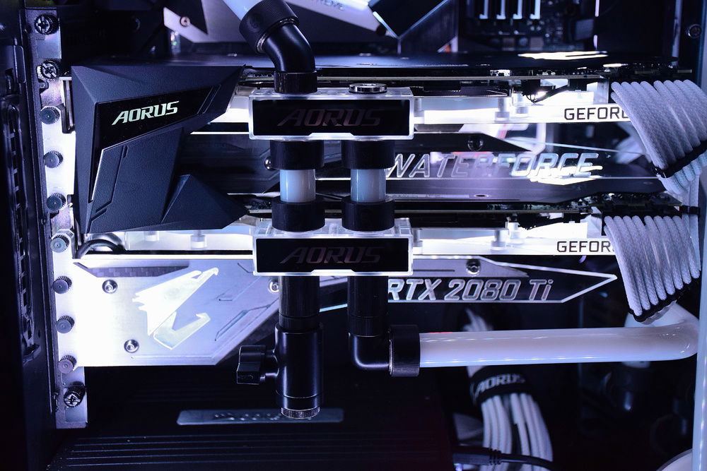 GPUs: AORUS GeForce RTX 2080 Ti XTREME WATERFORCE WB x2 w/ Aorus NVLINK Bridge