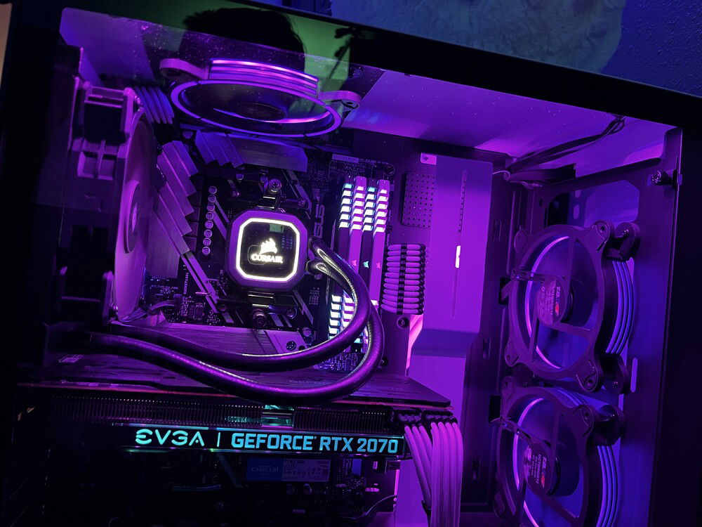 A pure white and black build, with tempered glass and nice array of RGB. It has sort of a futuristic/cyberpunk aesthetic going on. I finally got around to getting pics of it after putting the new RAM in over 2 years ago lmao