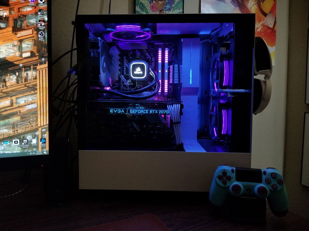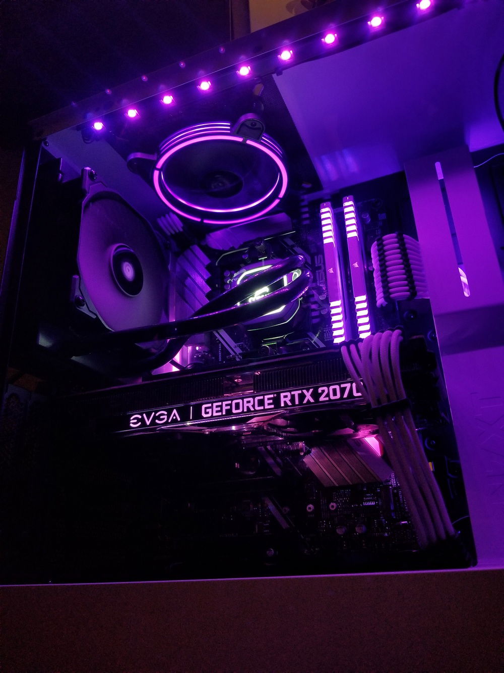2023 Update: I'm planning a major upgrade this year, and will update this post when the time comes. I plan to move on from my R7 3700X to an R7 5800X3D and to buy an RTX4080 or RX 7800 XTX. Unfortunately losing the simple EVGA RGB but hopefully not compromising the aesthetics too much. To accommodate the additional power draw, I'll be moving on to an RM850 power supply as well. A really expensive upgrade tbh but necessary for me. I do a lot of VR gaming and am moving from an Oculus Rift CV1 to a Valve Index. The additional resolution and refresh rate will need a ton more power. Getting too many frame drops in Beat Saber as it is lol. Aww dang and I also need a new CPU cooler because the one I have sprung a slow leak and isn't performing up to scratch. Nothing is damaged but I did notice a small amount of moisture on the GPU backplate directly underneath the tubing. I haven't decided on whether to go air or AIO this time around, and I don't wanna spend a ton of money on the new cooler. Hoping to keep the same general aesthetic though.