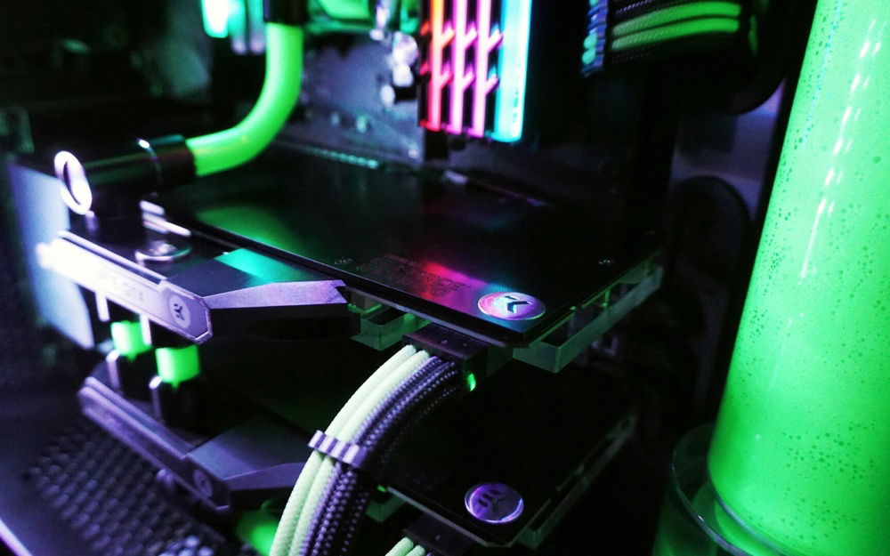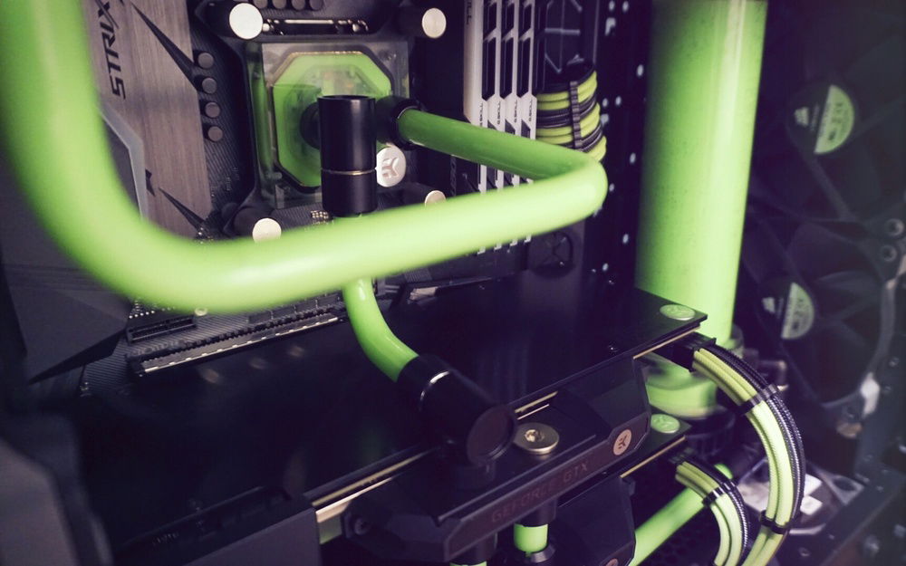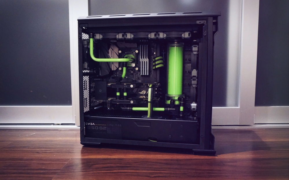 Phanteks Evolv dual radiator build in all black and Nickelodeon slime green.