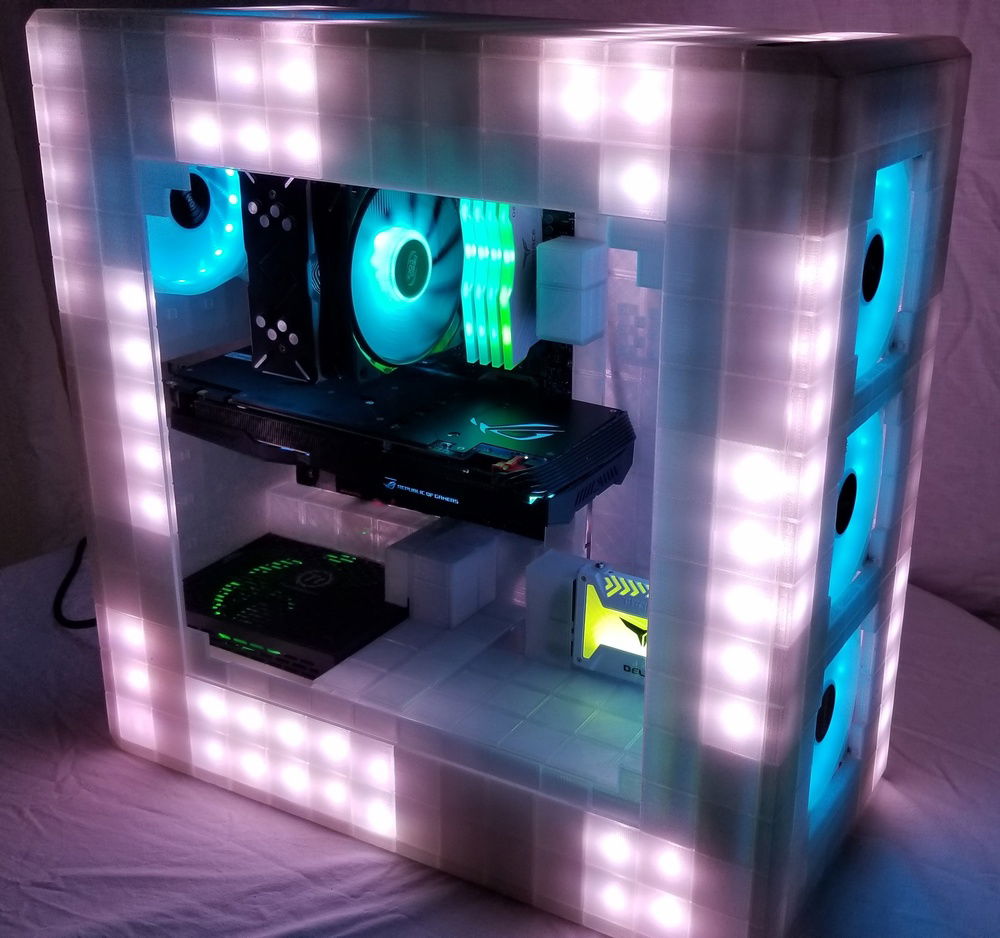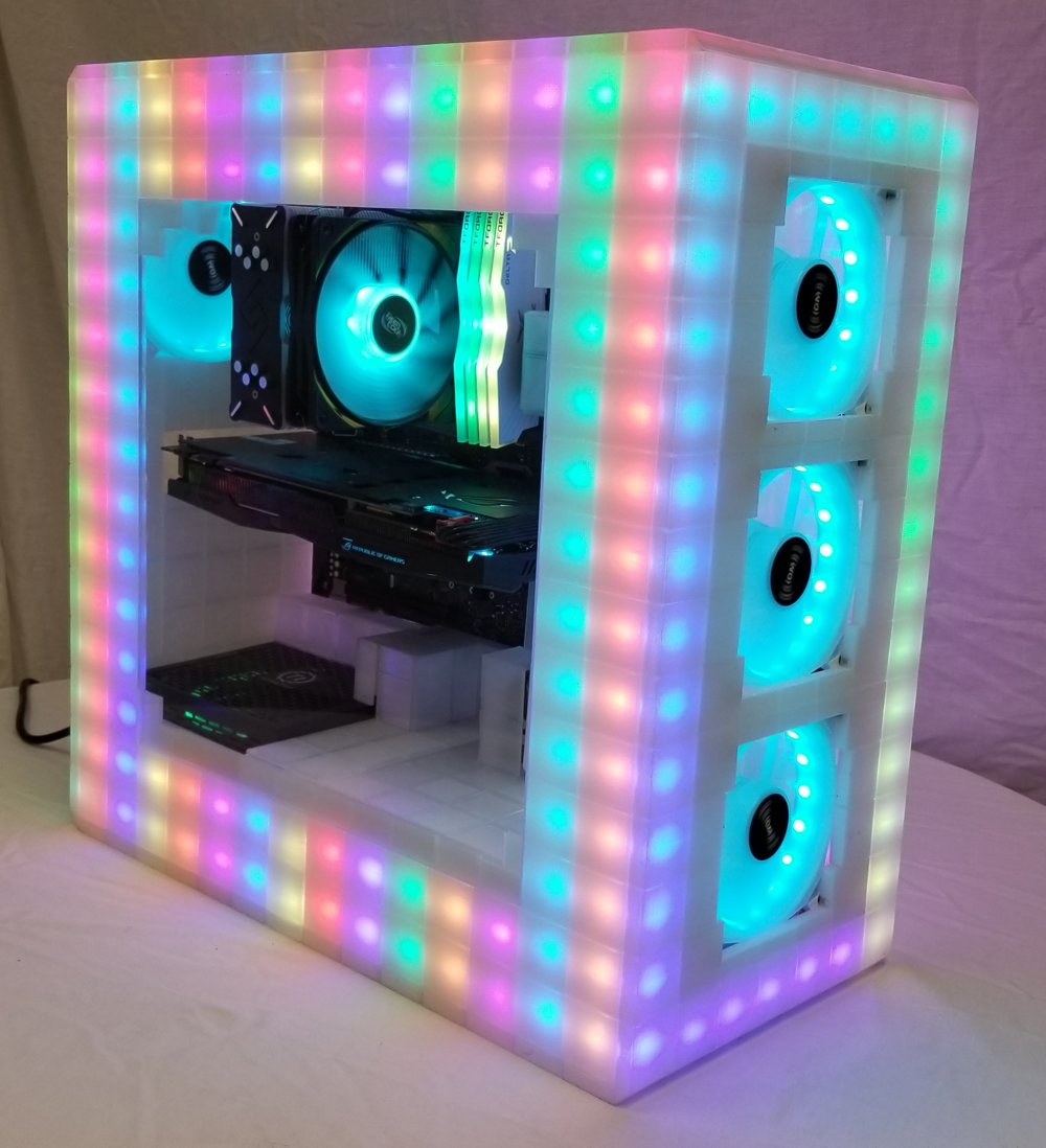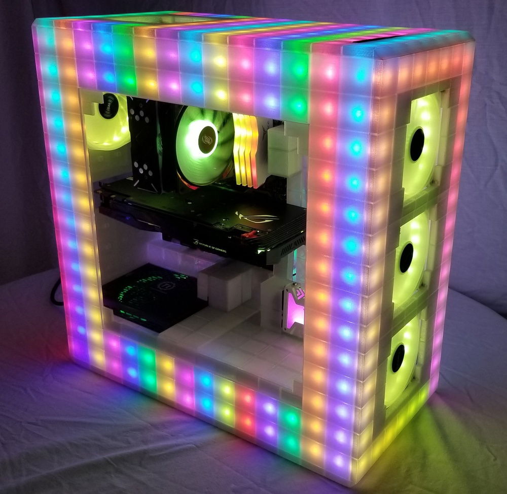 I made this PC case with a 3D printer over the course of 1-2 months. It has over 400 LEDs and puts out some serious light while also handling gaming. Heres the lights in motion: https://imgur.com/YxVzBaV I had to learn some light programming, electrical wiring and some 3D printer repairs during this project. It was worth the effort though and it makes me excited about future projects. Thanks
