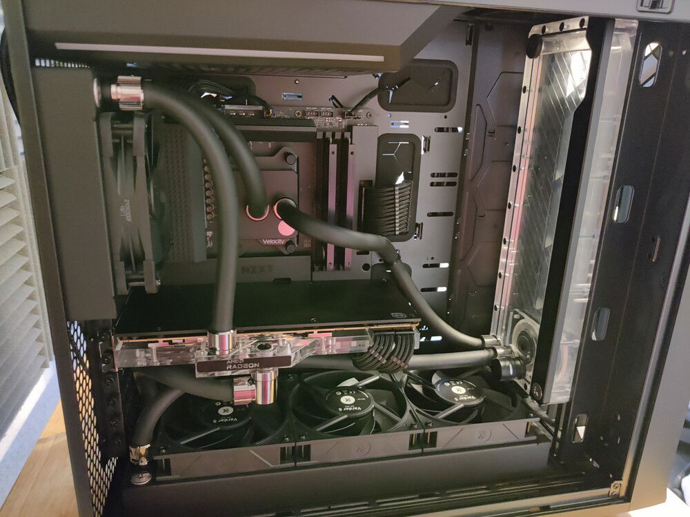 Front facing. Giant front panel case fans removed to make room for reservoir.