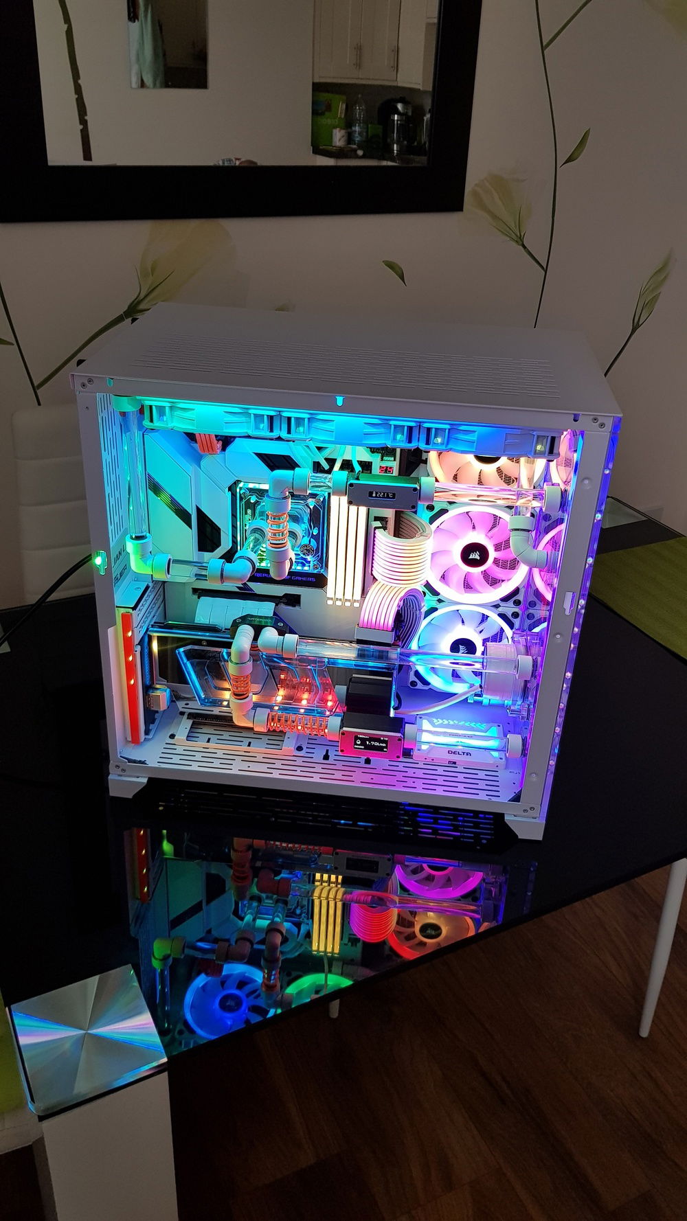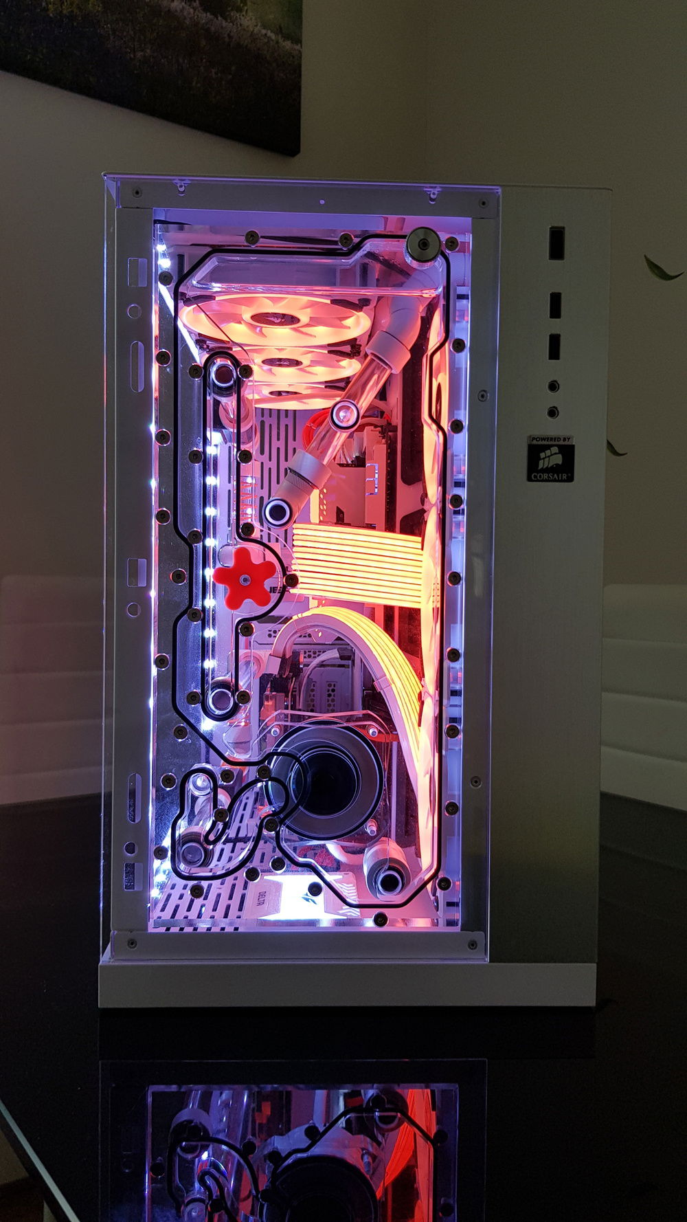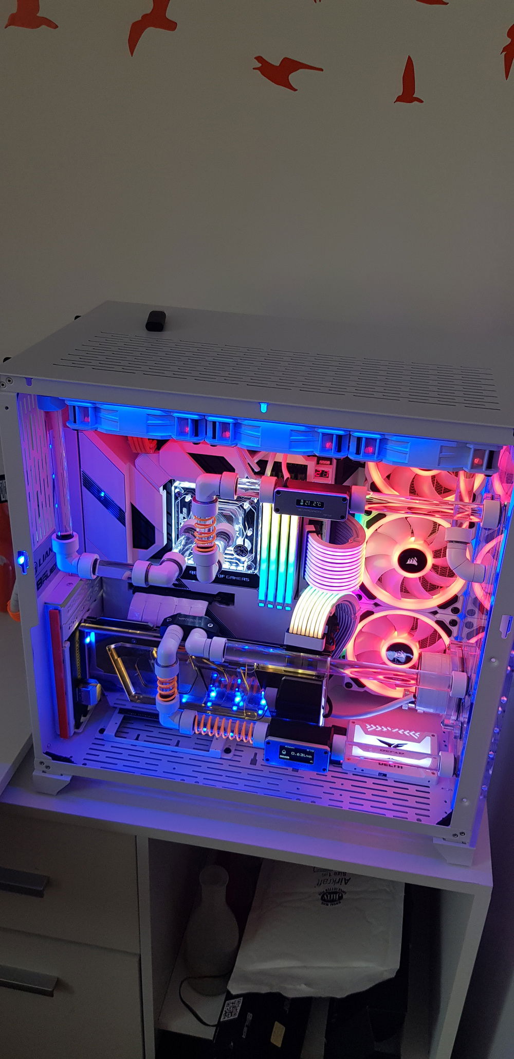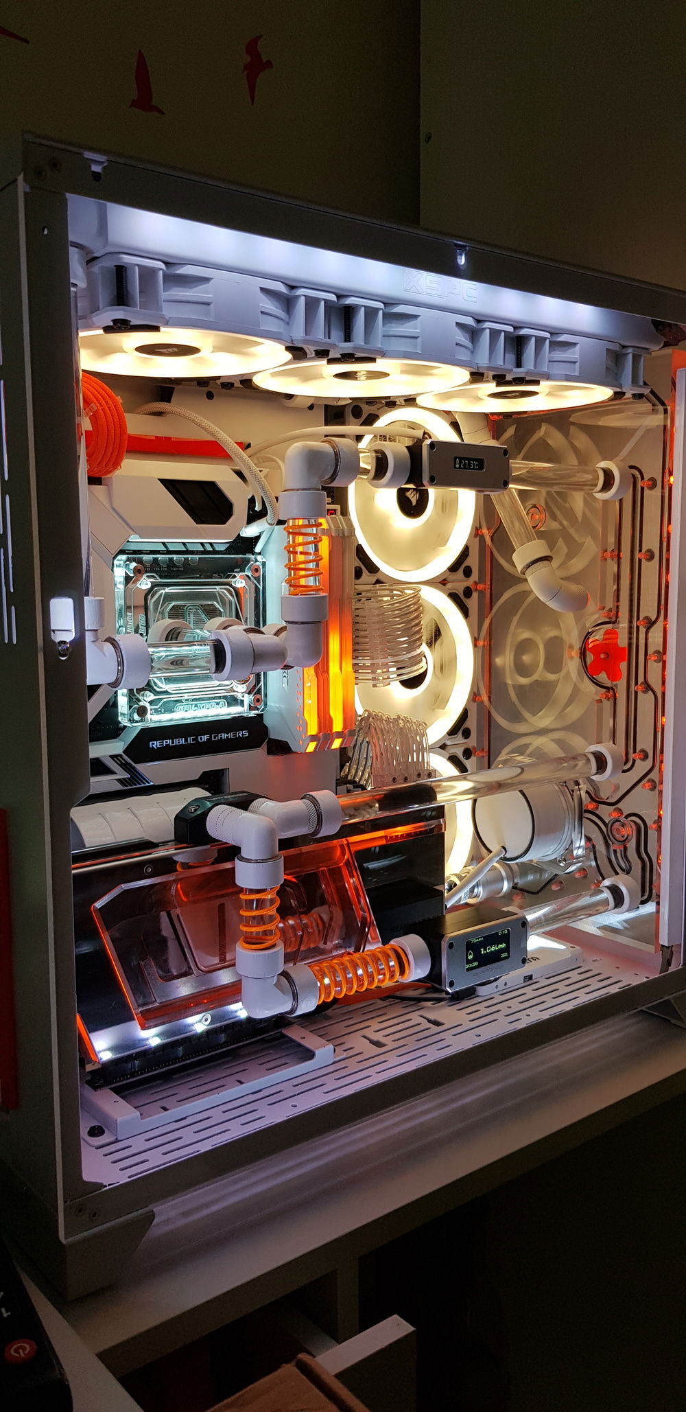 My build is based on the BB8 robot . I have always been using big towers for my builds nevertheless this time I wanted a little change. I wanted to try something smaller hence I've chosen Lian Li.. The O11 Dynamic is different, sexy and has great reviews. It has a very unique and stout look.I have painted a few parts. Most challenging and time consuming was painting my motherboard. I've used 3 MB covers to achieve desired results without any blemishes . Also, I've painted my GPU riser, D5 pump and all fittings