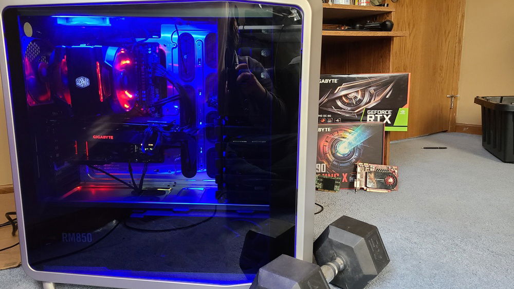 This hunk of glass n steel weighs in at over 70 lbs.6tb of storage 5 of it in raid0. This unit started as a weight lifters casual PC but has evolved into a true gaming PC... for lifters