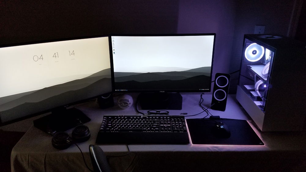 This was the dream build i always wanted and it is my first ever pc build. I will be a junior in high school, started working in November of 2017 to pay for this setup myself. I completed the build in August 2018. My previous "setup" was a $200 refurbished HP Pavilion i got on ebay, it was a 6th gen core i5 with 128gb of storage, 4gb of ram, and was set up on my family's dinning table. Hope you guys like it!