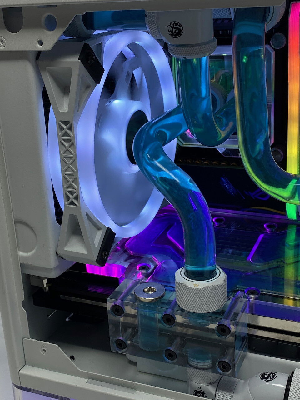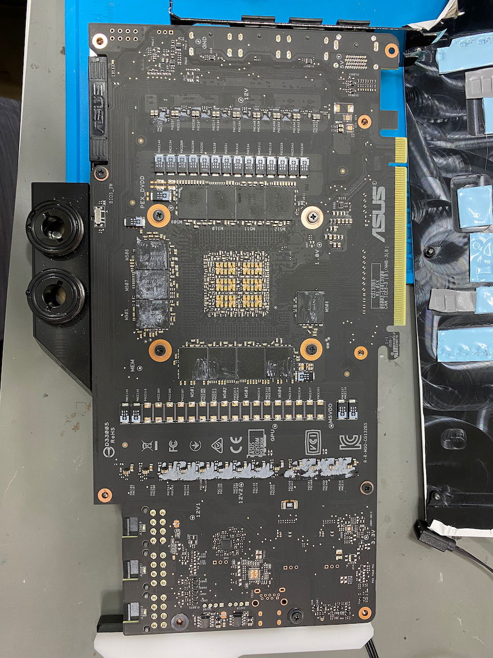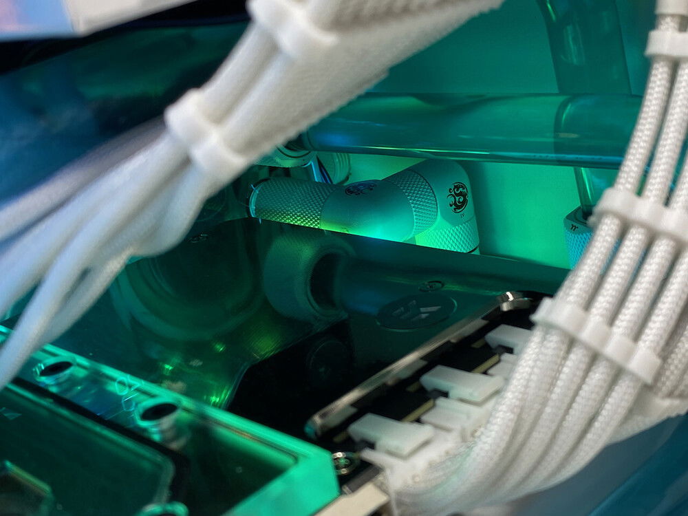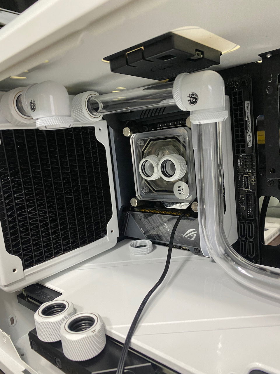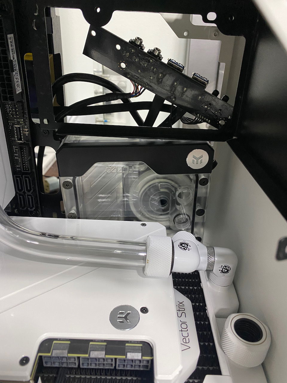 The fitment of the GPU with waterblock installed inside the case is TIGHT. Like... not a 1/8mm to spare. I'm very lucky I didn't have to modify anything.