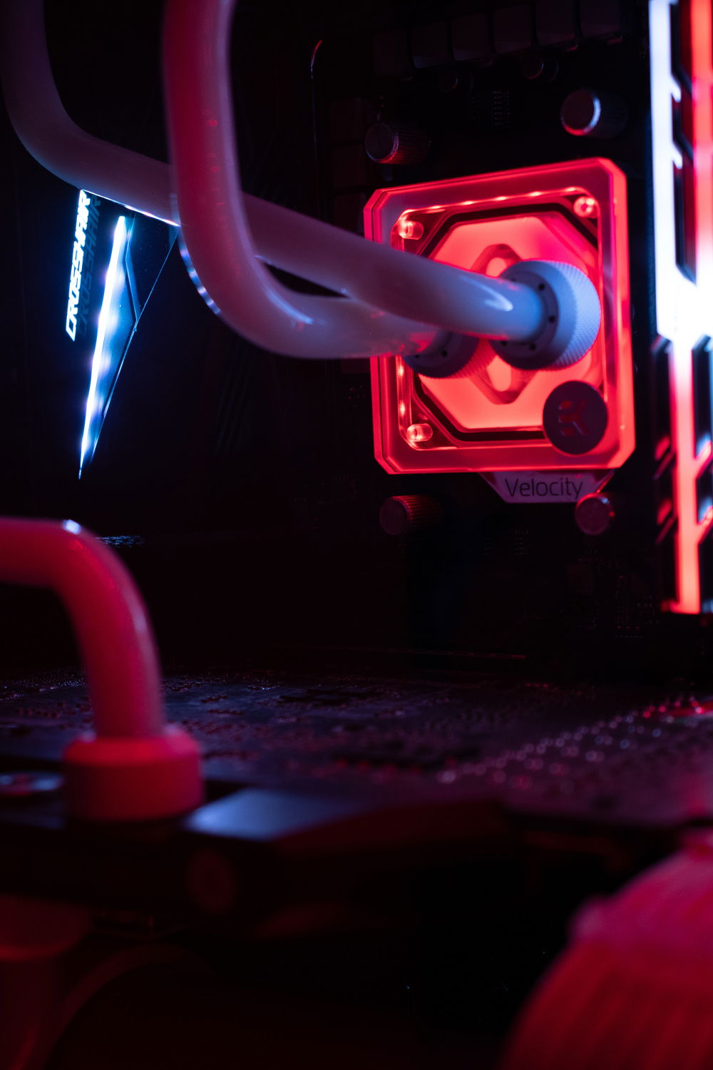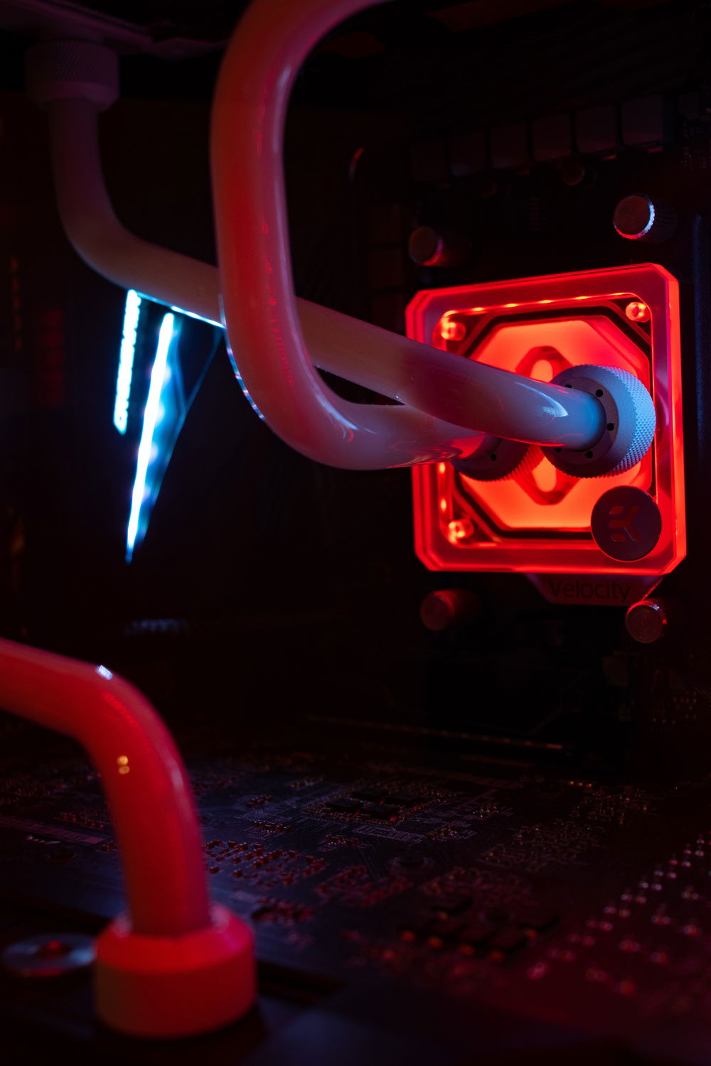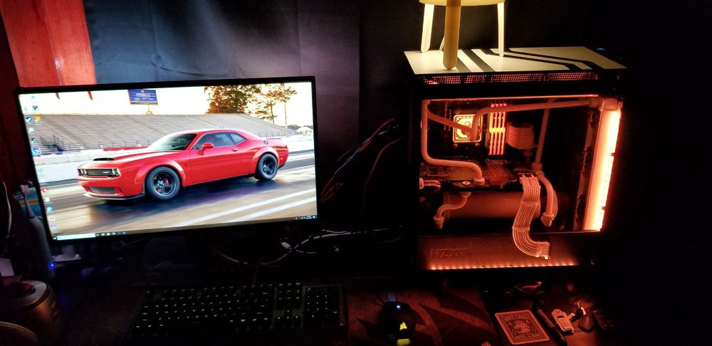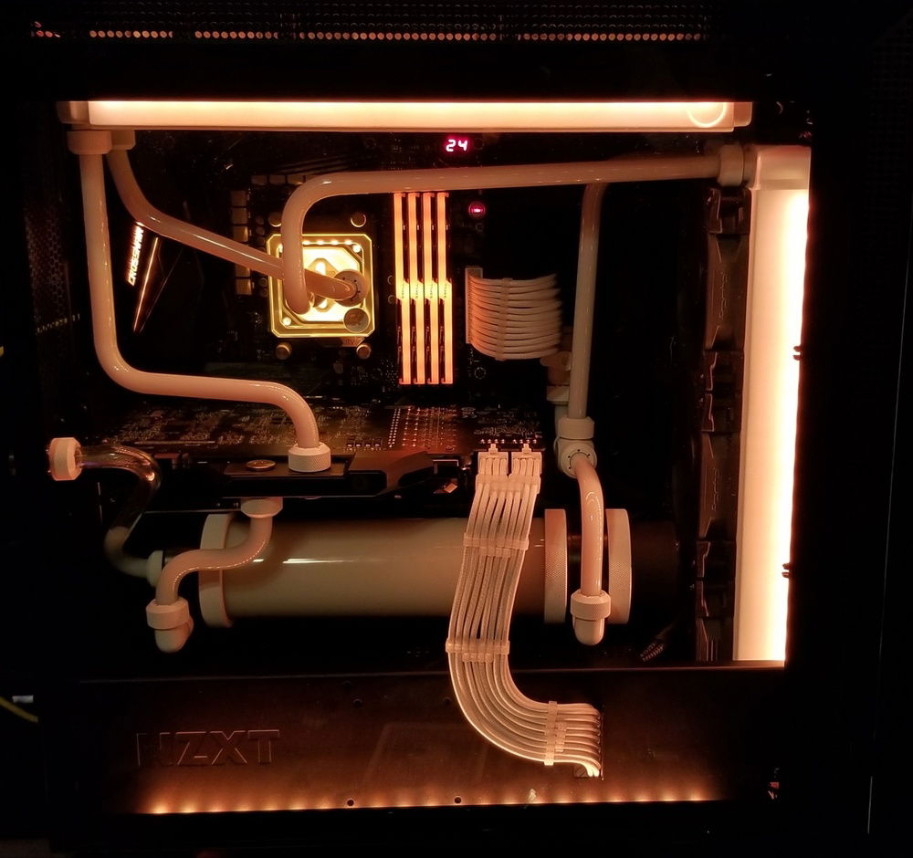 Black and White custom loop and cables using EK blocks and primochill cooling parts. Ryzen 7 2700x overclocked to 4.4Ghz