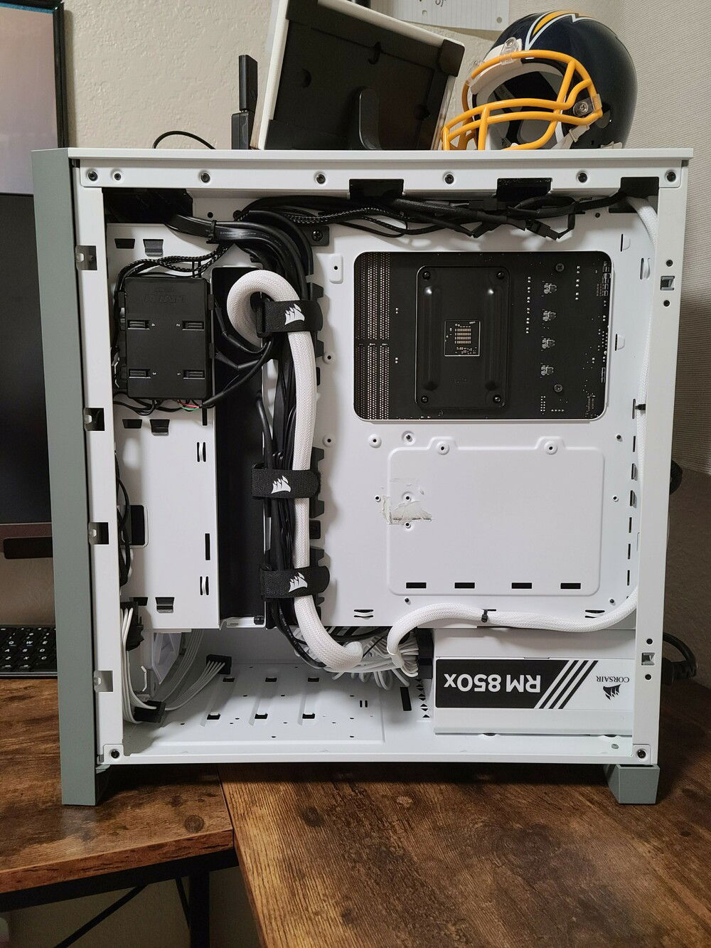 Black and white color scheme all AMD build. Did not plan to do it this way initially. Had the same case in black and had an all black build initially. Was traded some parts and the opportunity presented itself. Results were picture worthy (at least in my opinion). Took my time with cable management and attempted to make it as neat as possible. With the given parts I figured I should do them justice. Went with an al air cooled system. Noctua lives up to their name in terms of performance and volume.