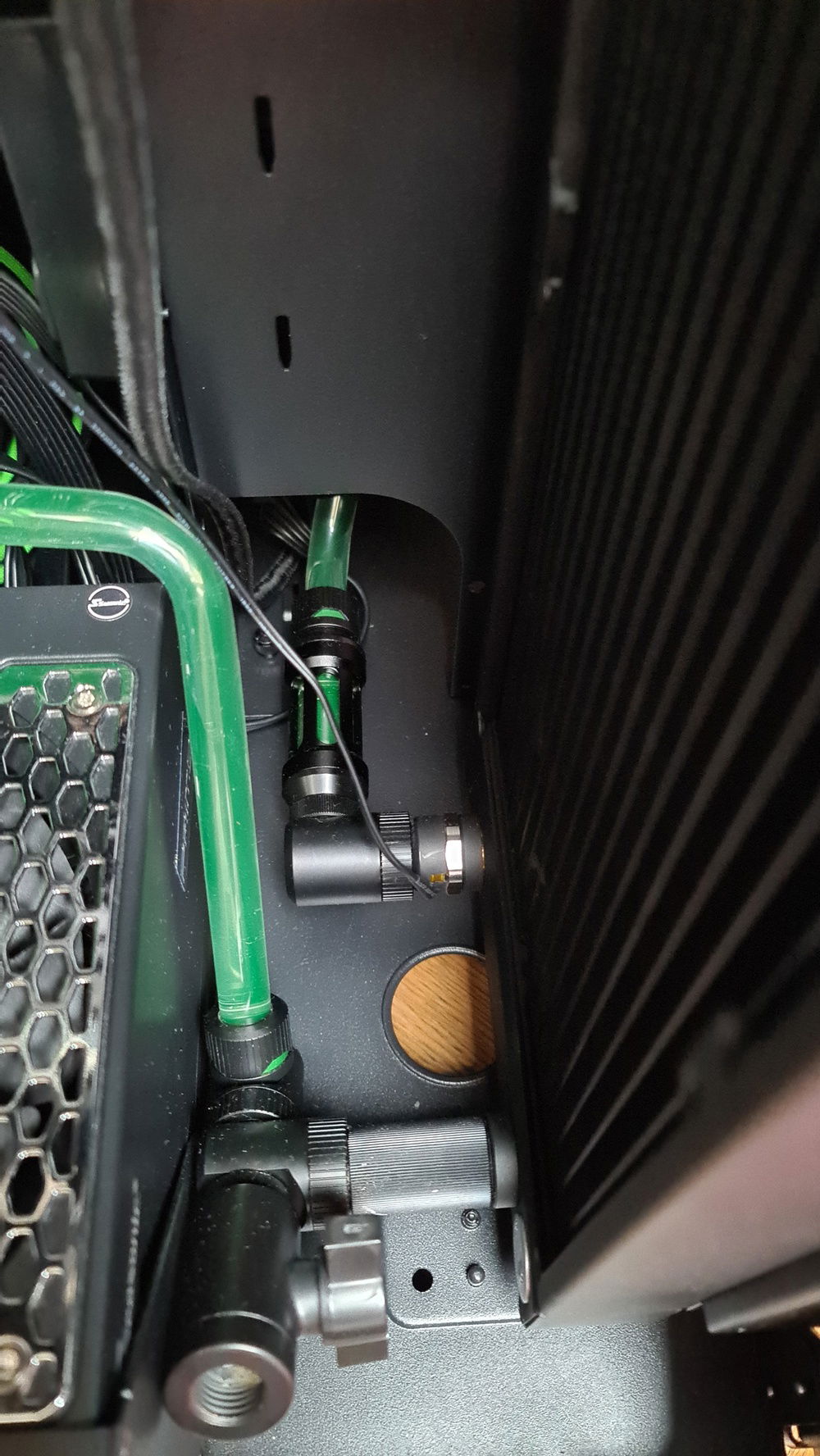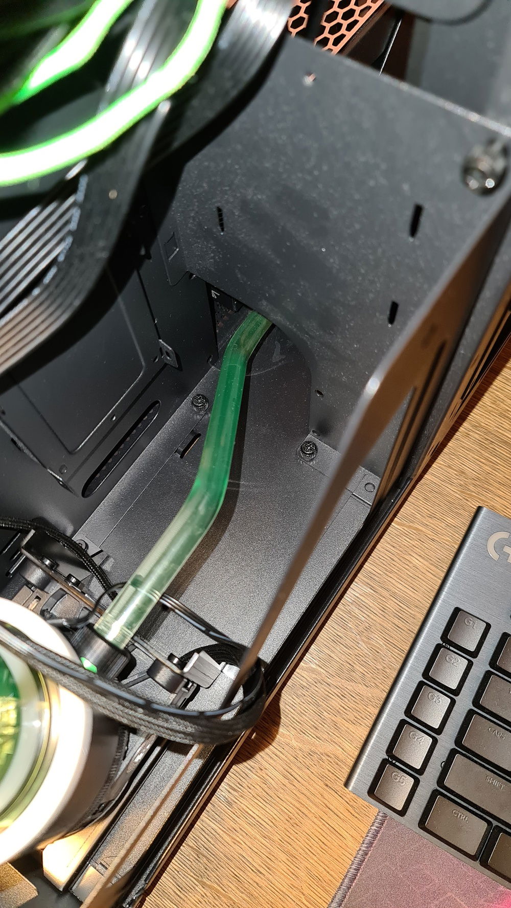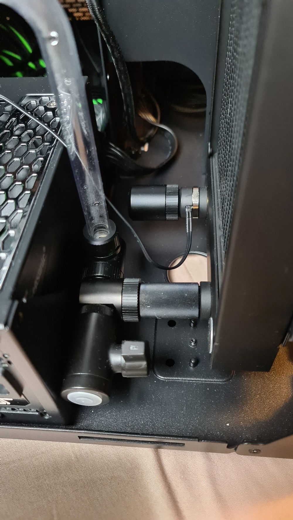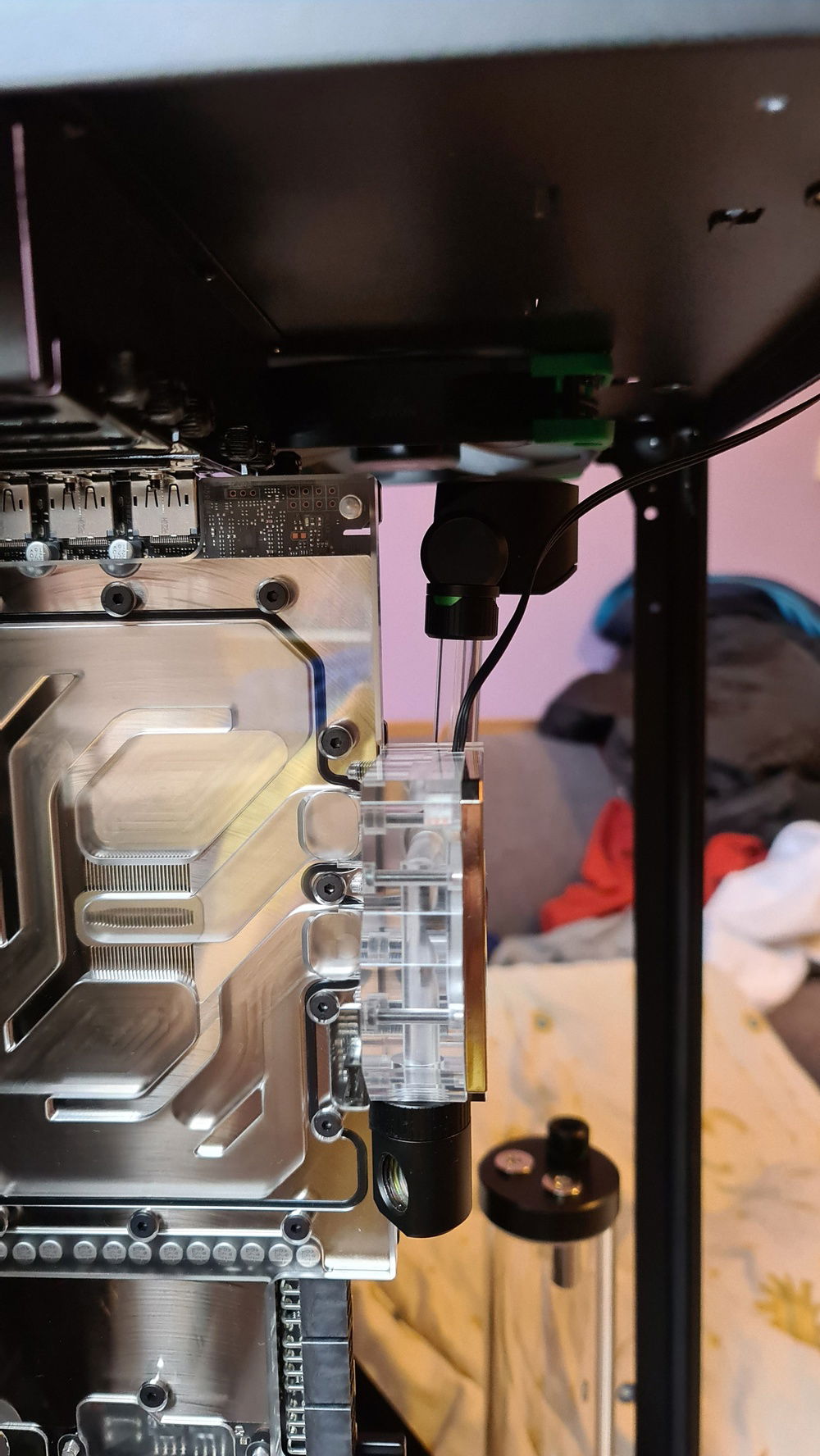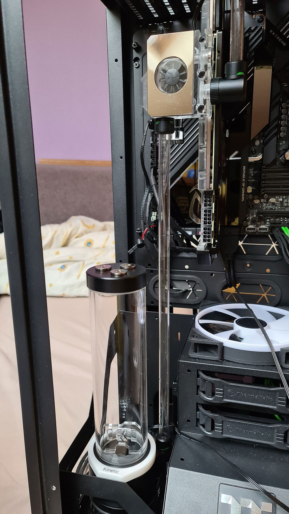 While I was quite enthusiastic about tube bending, I was not very happy with the bending itself. There are a lot of guides on the internet on how to do it, but I guess I'm impatient (because I try to be accurate). So summa summarum came out as it came out. I didn't like the end result anyway and I ordered Mayhems glass tubes. I will replace the capacitor after the correction on the graphics. I will put them in places that are in view. The pump outlets are hidden low, so there will be acrylics. Generally, for the first time in my life made water cooling, I am satisfied. The whole thing still needs small corrections (sleeve cables, cable arrangement).