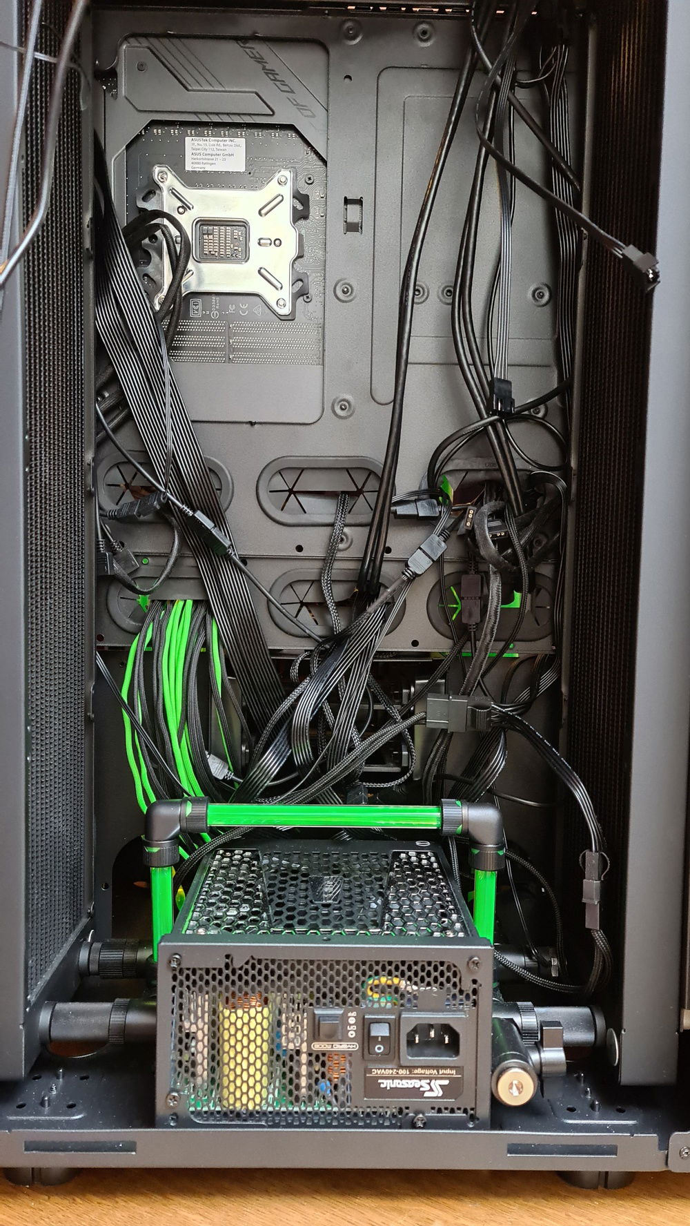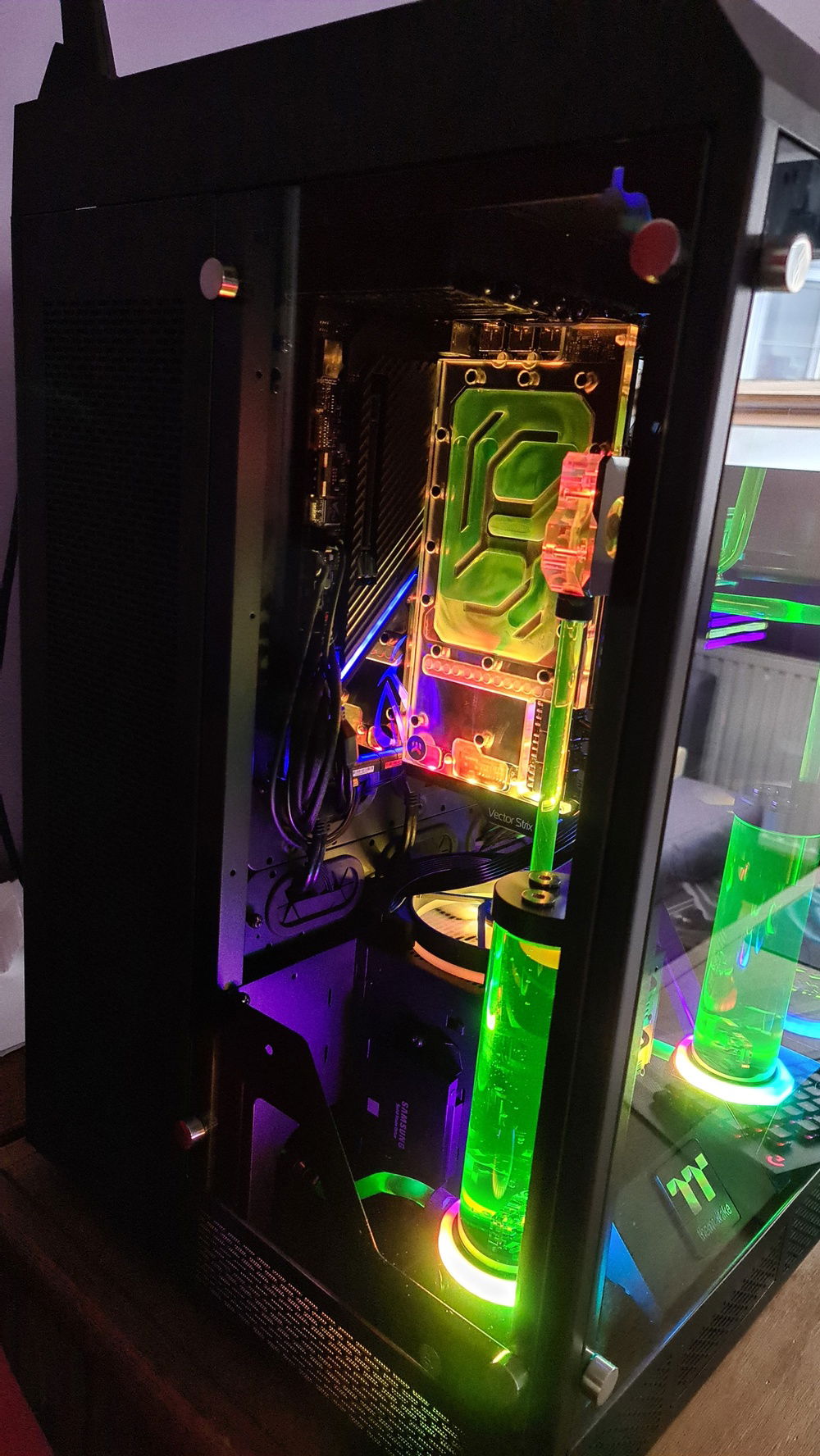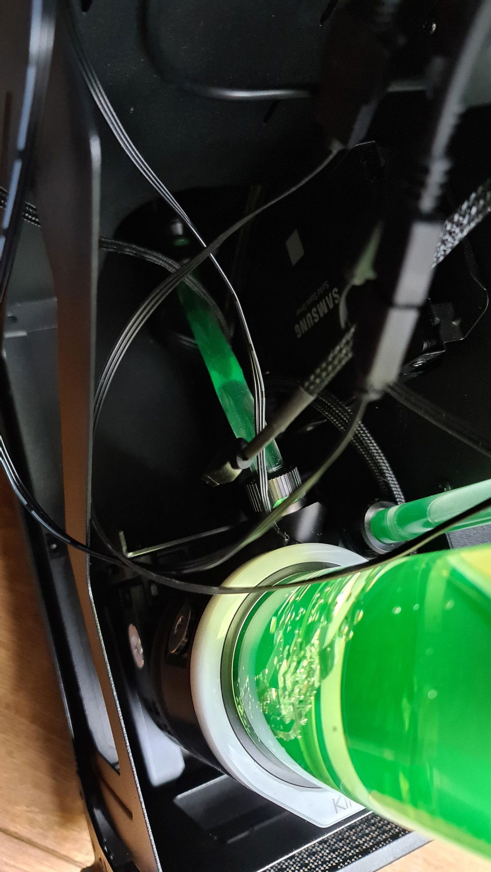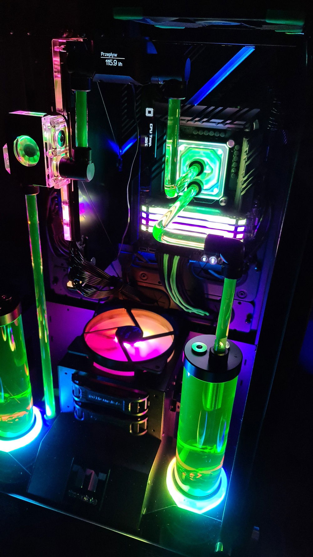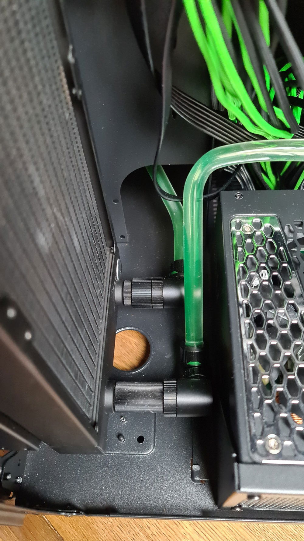 While I was quite enthusiastic about tube bending, I was not very happy with the bending itself. There are a lot of guides on the internet on how to do it, but I guess I'm impatient (because I try to be accurate). So summa summarum came out as it came out. I didn't like the end result anyway and I ordered Mayhems glass tubes. I will replace the capacitor after the correction on the graphics. I will put them in places that are in view. The pump outlets are hidden low, so there will be acrylics. Generally, for the first time in my life made water cooling, I am satisfied. The whole thing still needs small corrections (sleeve cables, cable arrangement).