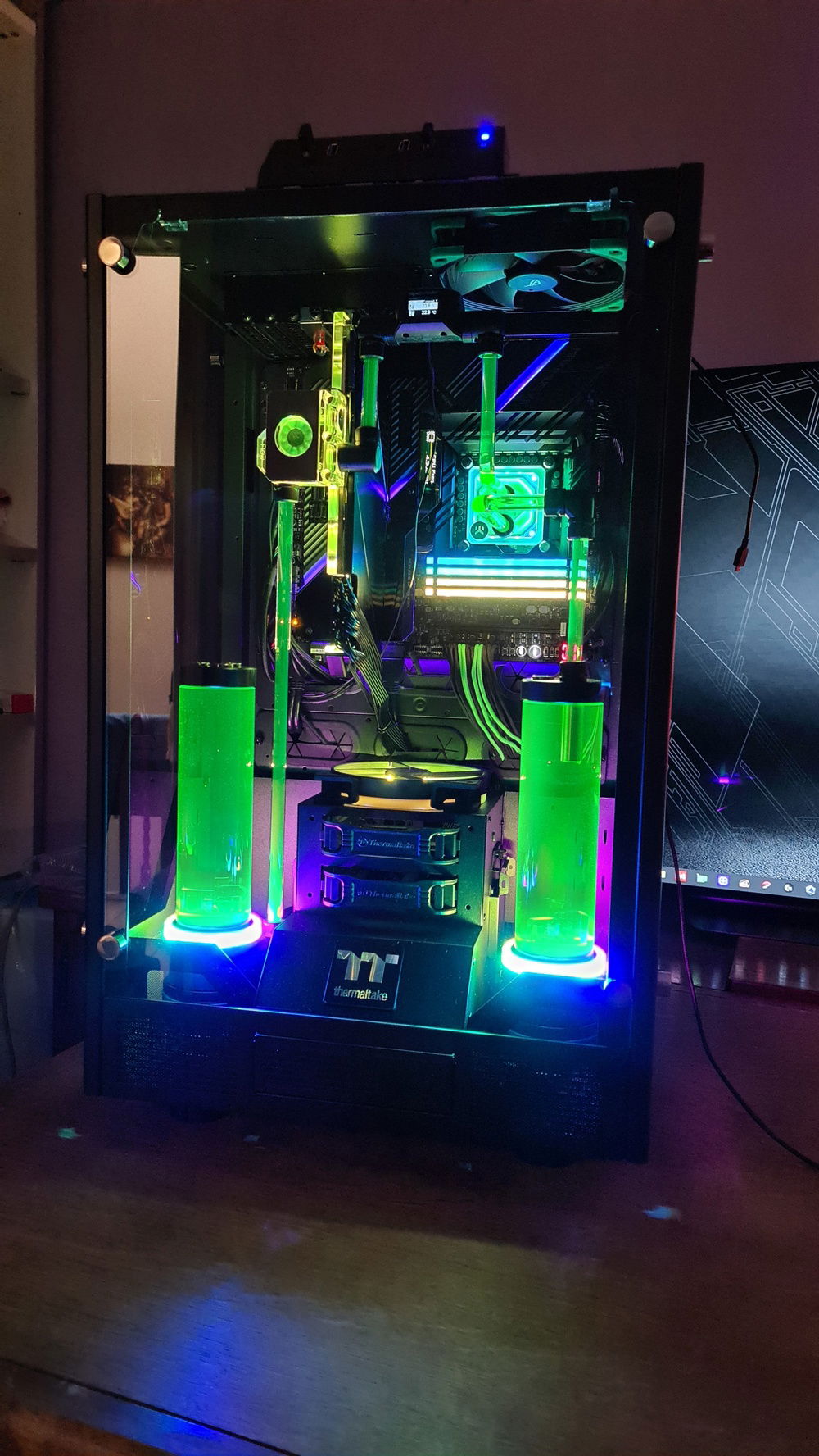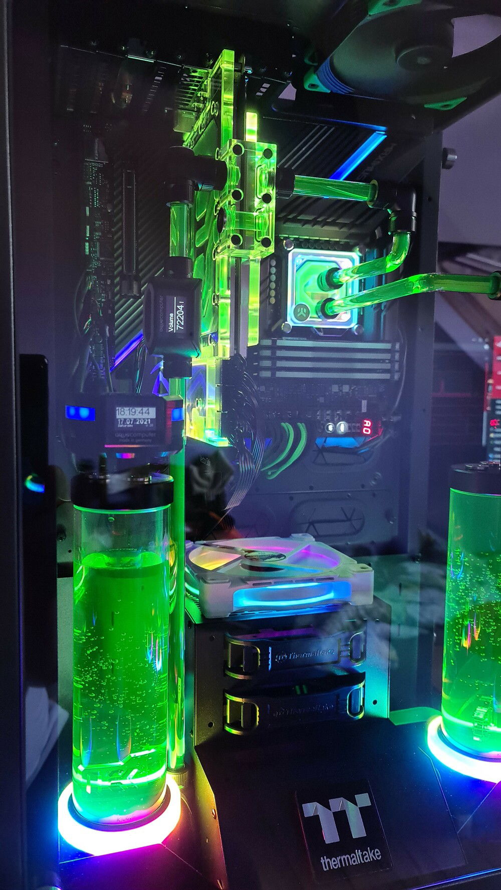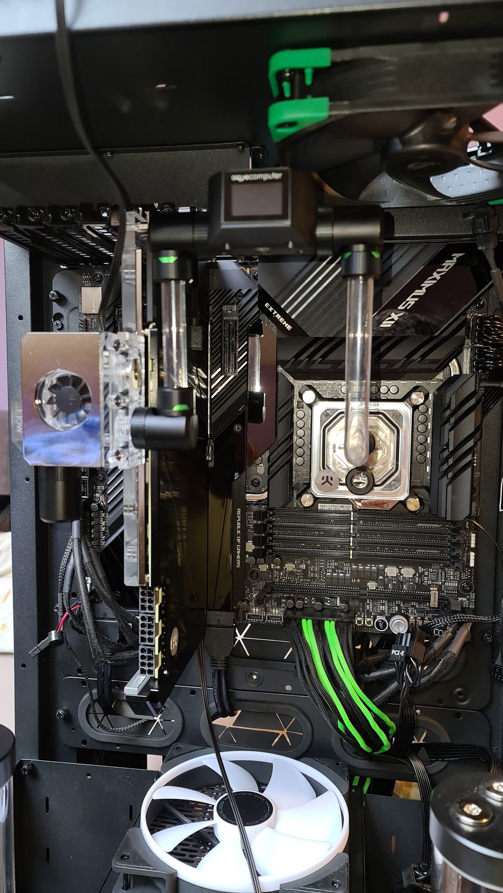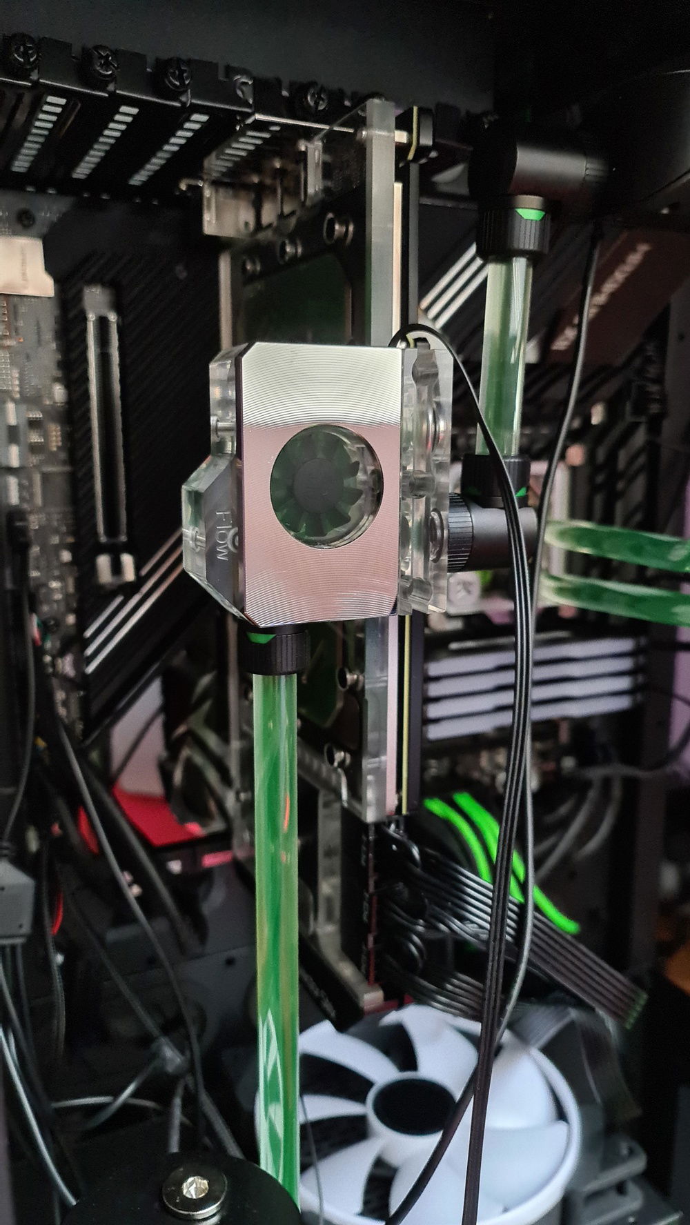 While I was quite enthusiastic about tube bending, I was not very happy with the bending itself. There are a lot of guides on the internet on how to do it, but I guess I'm impatient (because I try to be accurate). So summa summarum came out as it came out. I didn't like the end result anyway and I ordered Mayhems glass tubes. I will replace the capacitor after the correction on the graphics. I will put them in places that are in view. The pump outlets are hidden low, so there will be acrylics. Generally, for the first time in my life made water cooling, I am satisfied. The whole thing still needs small corrections (sleeve cables, cable arrangement).