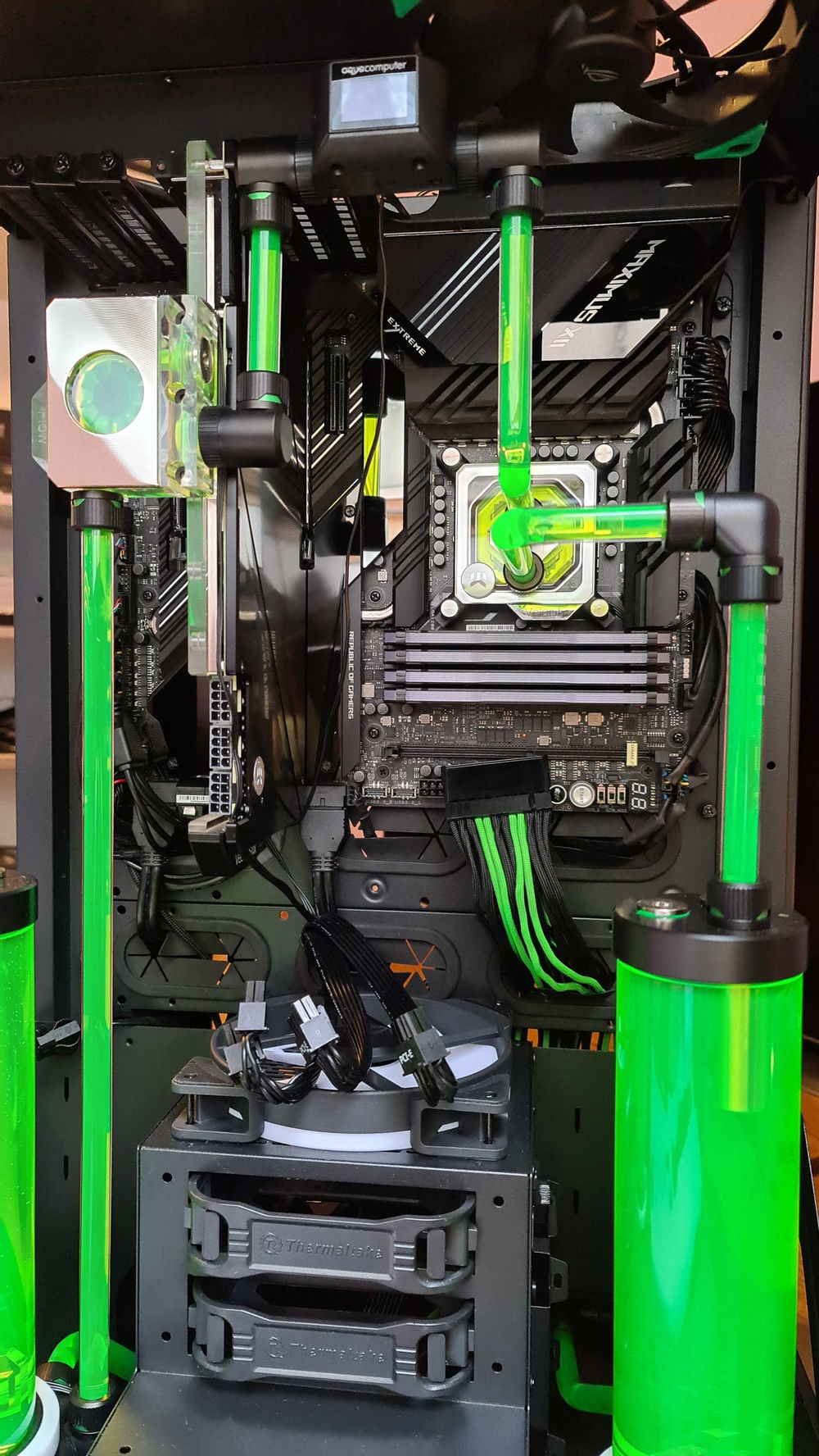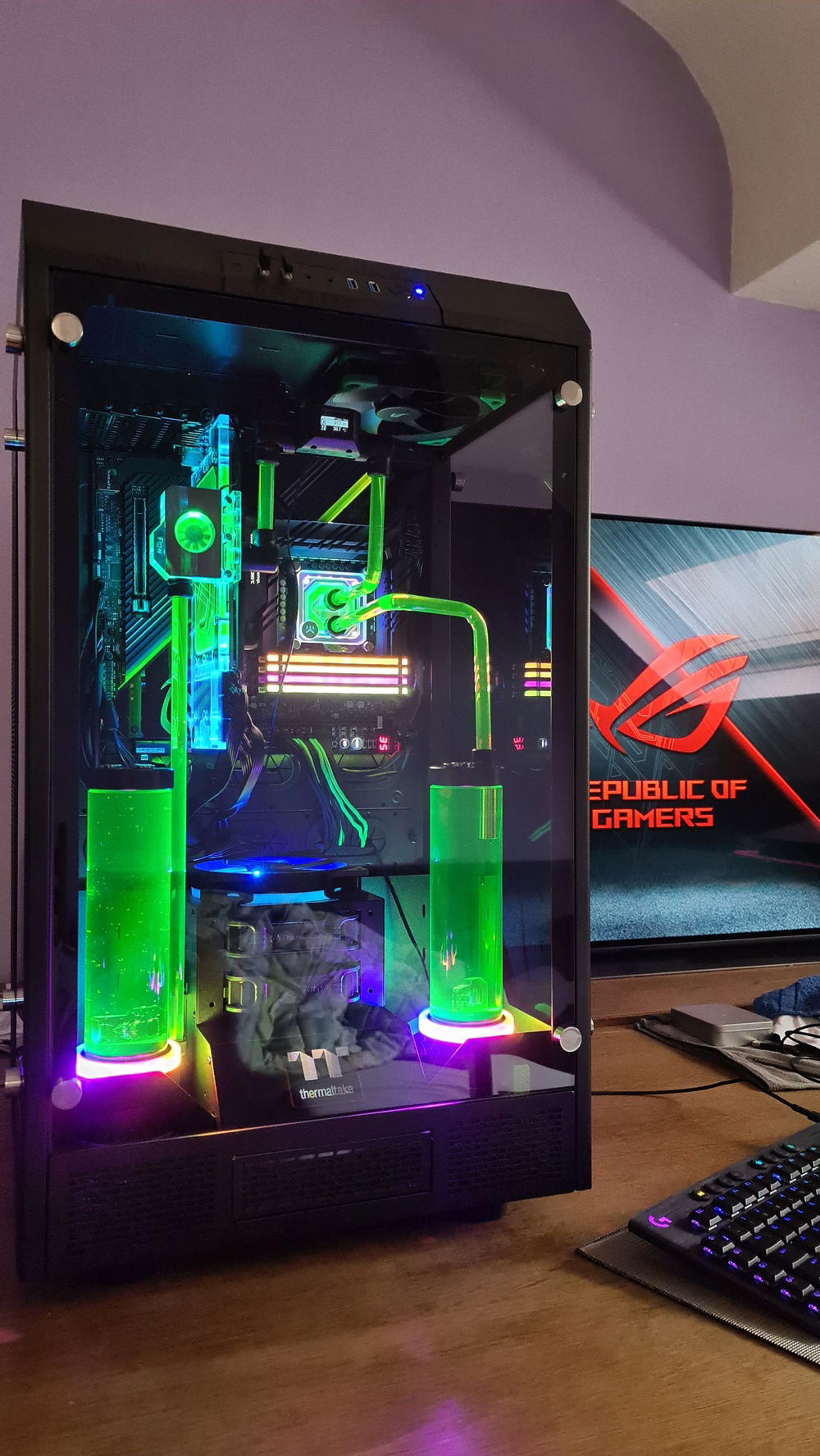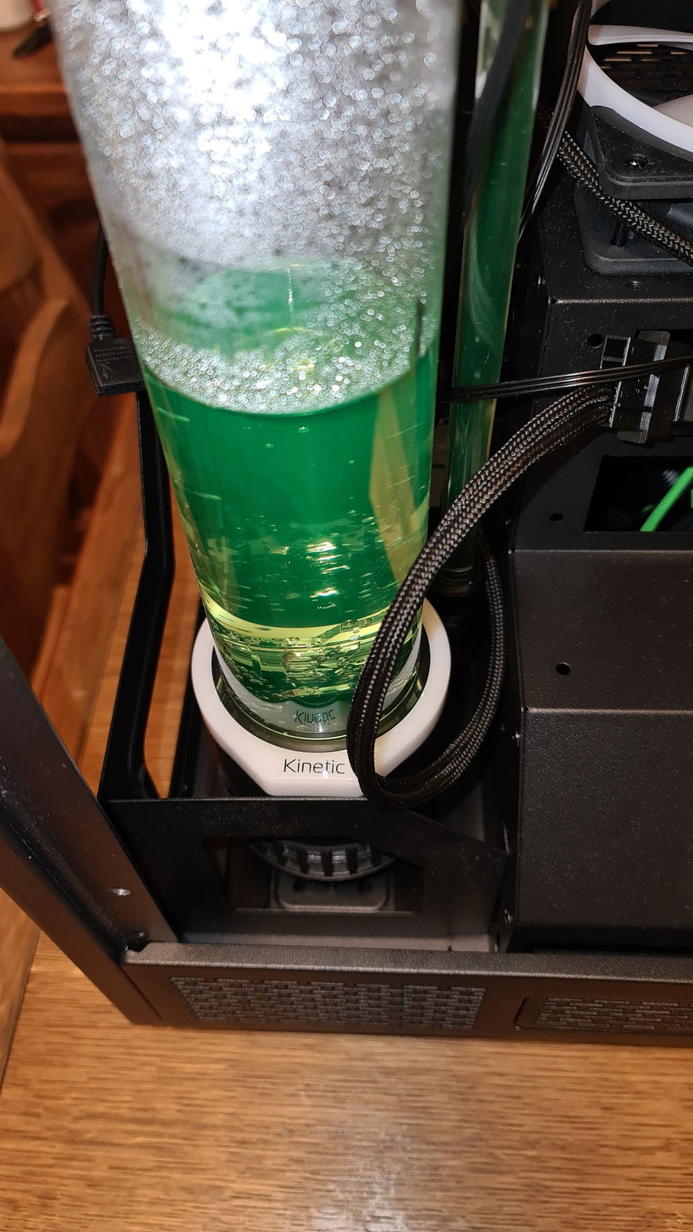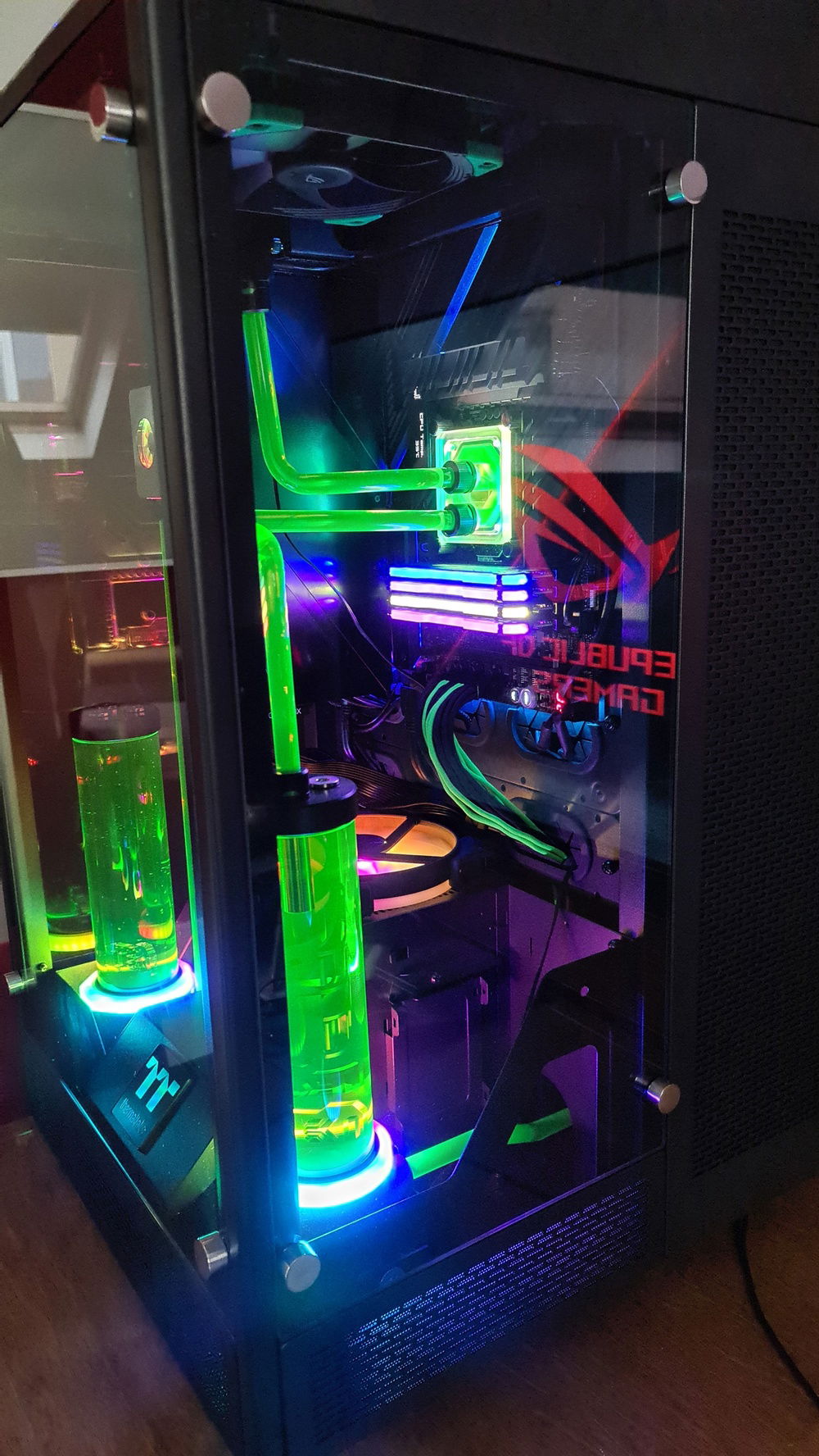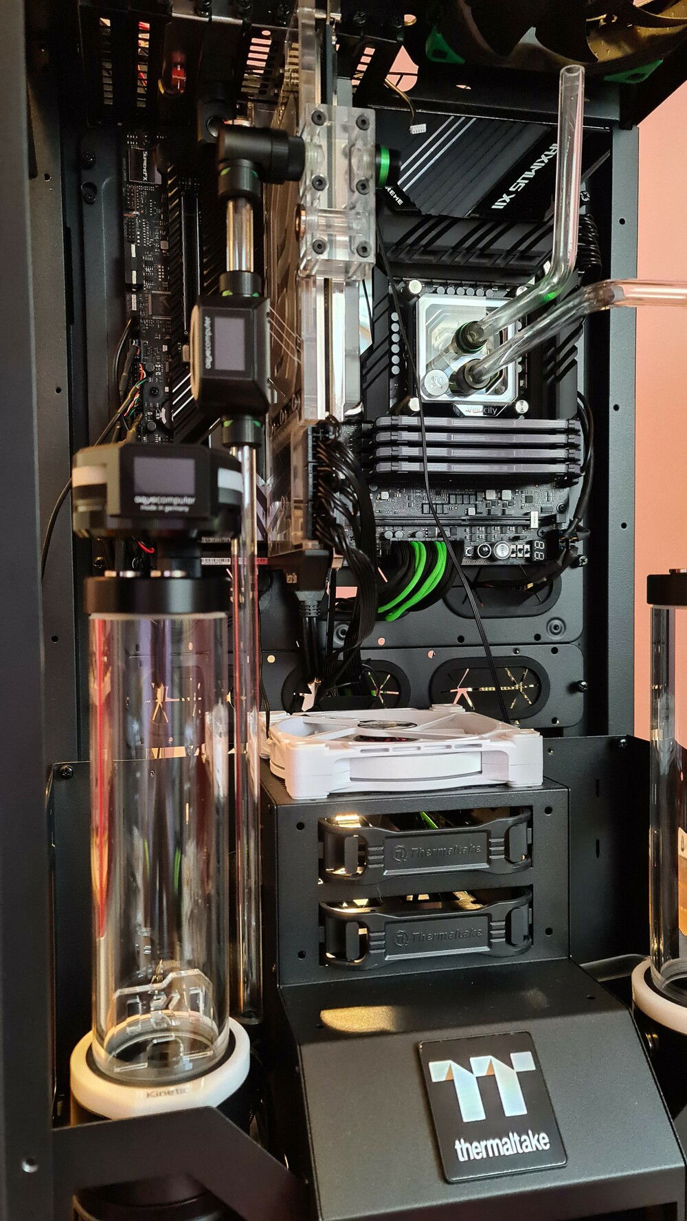 While I was quite enthusiastic about tube bending, I was not very happy with the bending itself. There are a lot of guides on the internet on how to do it, but I guess I'm impatient (because I try to be accurate). So summa summarum came out as it came out. I didn't like the end result anyway and I ordered Mayhems glass tubes. I will replace the capacitor after the correction on the graphics. I will put them in places that are in view. The pump outlets are hidden low, so there will be acrylics. Generally, for the first time in my life made water cooling, I am satisfied. The whole thing still needs small corrections (sleeve cables, cable arrangement).