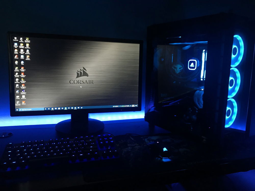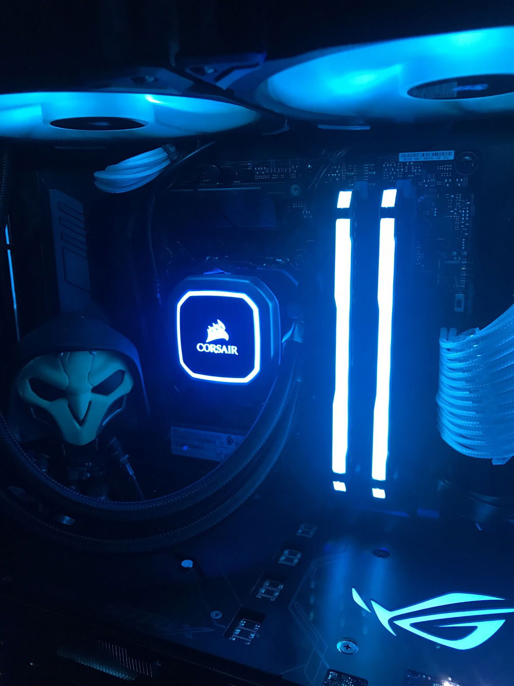 This is my first ever build, I payed about $1700 for all the parts, although prices are still dropping and you could probably buy the same parts for lower prices. I included the Reaper (Overwatch) and Dark Springtrap (FNAF) Funko Pops because I had them on hand and they needed to be used for something. I consider myself a Corsair fanboy, they make incredibly high quality components and accessories and I wanted to sync the RGB using their iCUE software.