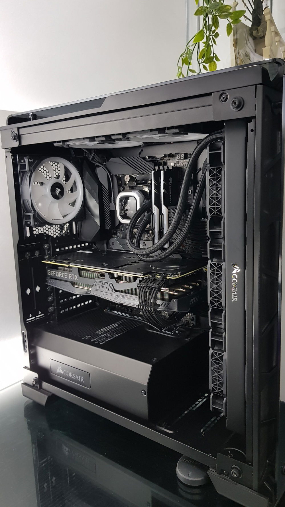 This is my First ever Pc build. I hope you like it :) PC Specs: 1.CPU: AMD Ryzen 3700X 2. MOBO: 570X Asus Crosshair VIII Hero 3.GPU:RTX 2080 ASUS OC 4.RAM:GSKILL Trident Z 16GB 14cas 5.PSU:Seasonic Prime 800W Titanum 6. Drives:Samsung 970 plus m2 500GB & WD black HDD 2 TB 8.Corsair commander Pro & 6 LL120 fans 9.Cooling: Corsair H150i pro Case: Corsair 570X Mirror Black Chair: Thermaltake Tt eSPORTS GT Fit F100 Peripherals: Monitor:Alienware 34inch Ultrawide AW3418DW Keyboard &Keycaps : Corsair k95 Platinum & Hyper X PBT Mouse: Logitech G903 lightspeed Speakers: Soudblaster X Katana Headsets/stand: Steelseries Arctis 7 & Corsair ST100RGB Smart device: Amazon Alexa Gen2