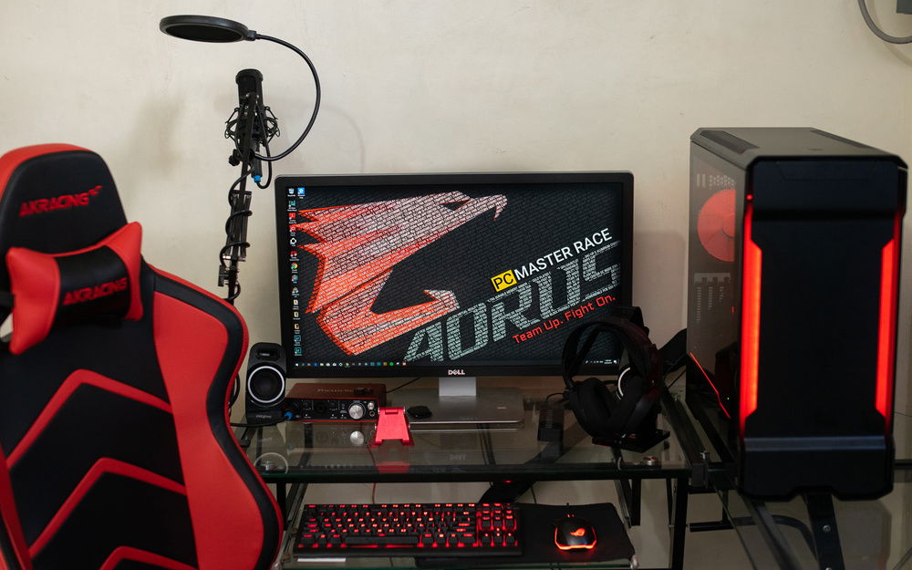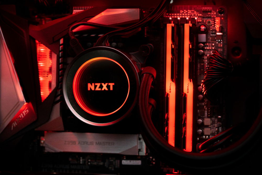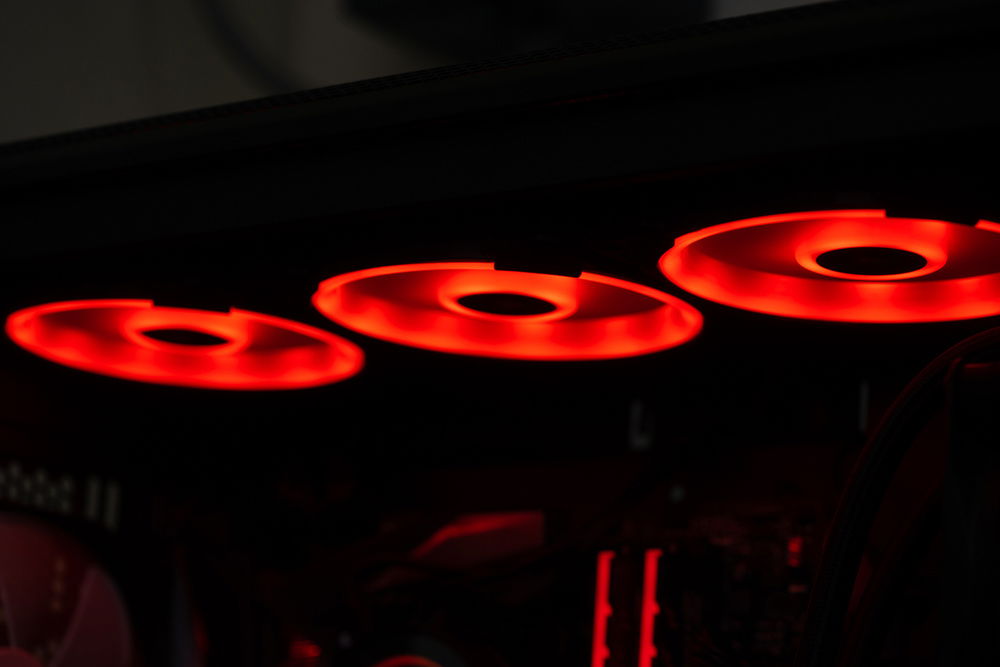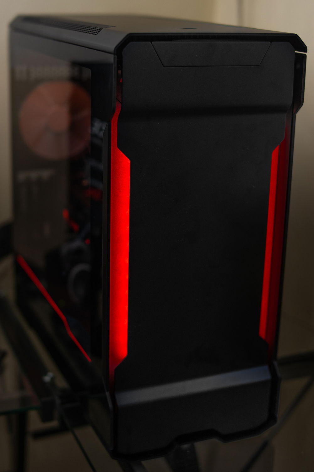 A black and red Intel i9 9900k rig built for Adobe Lightroom efficiency.
