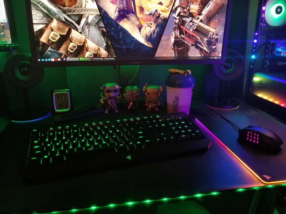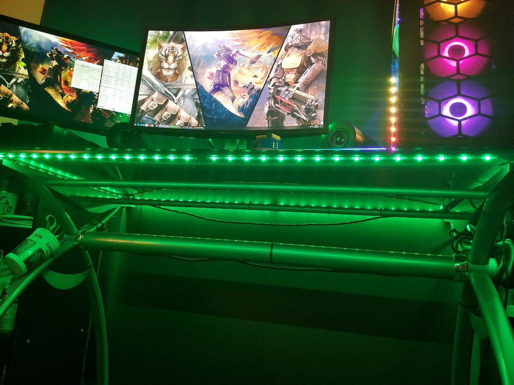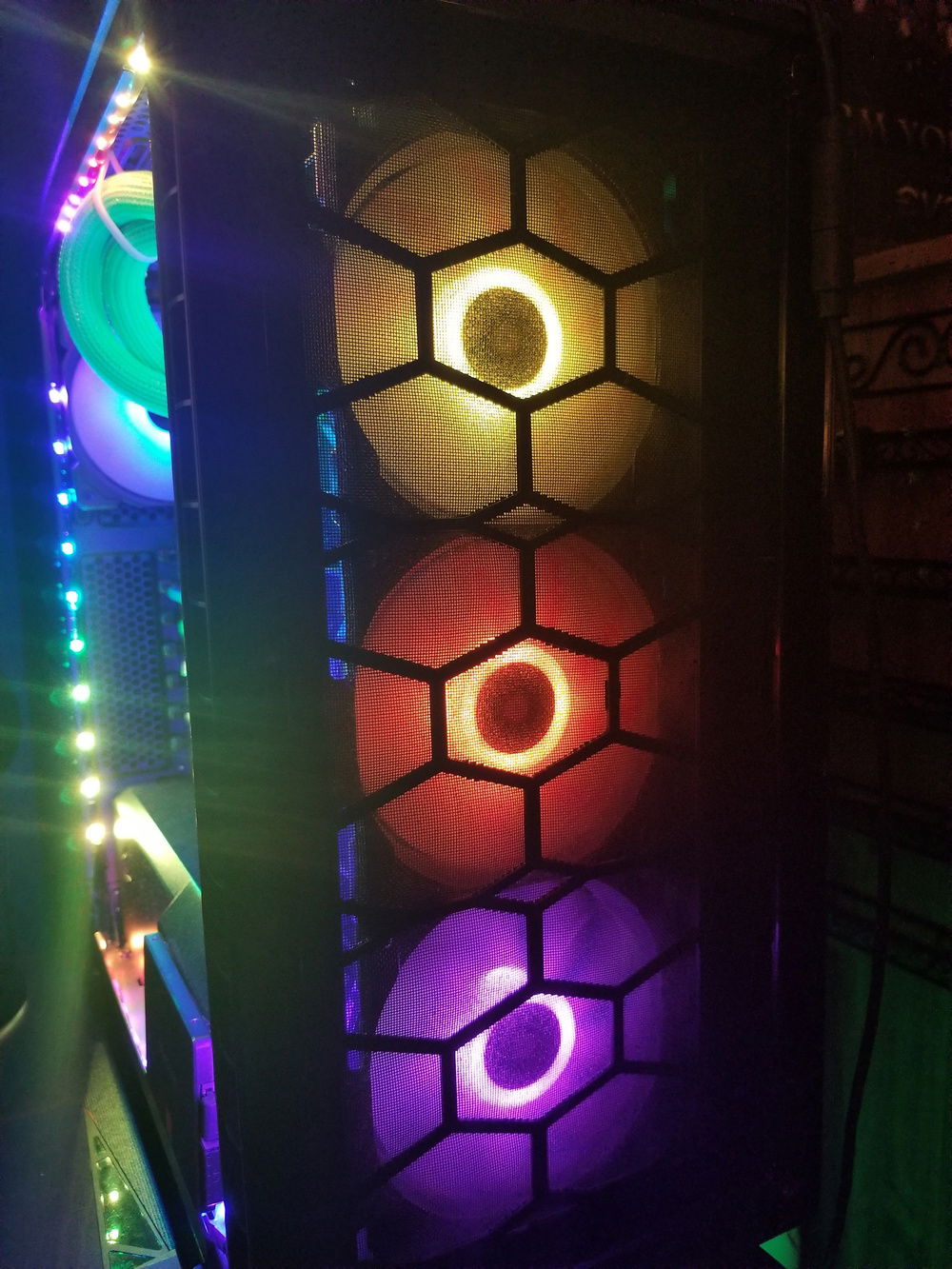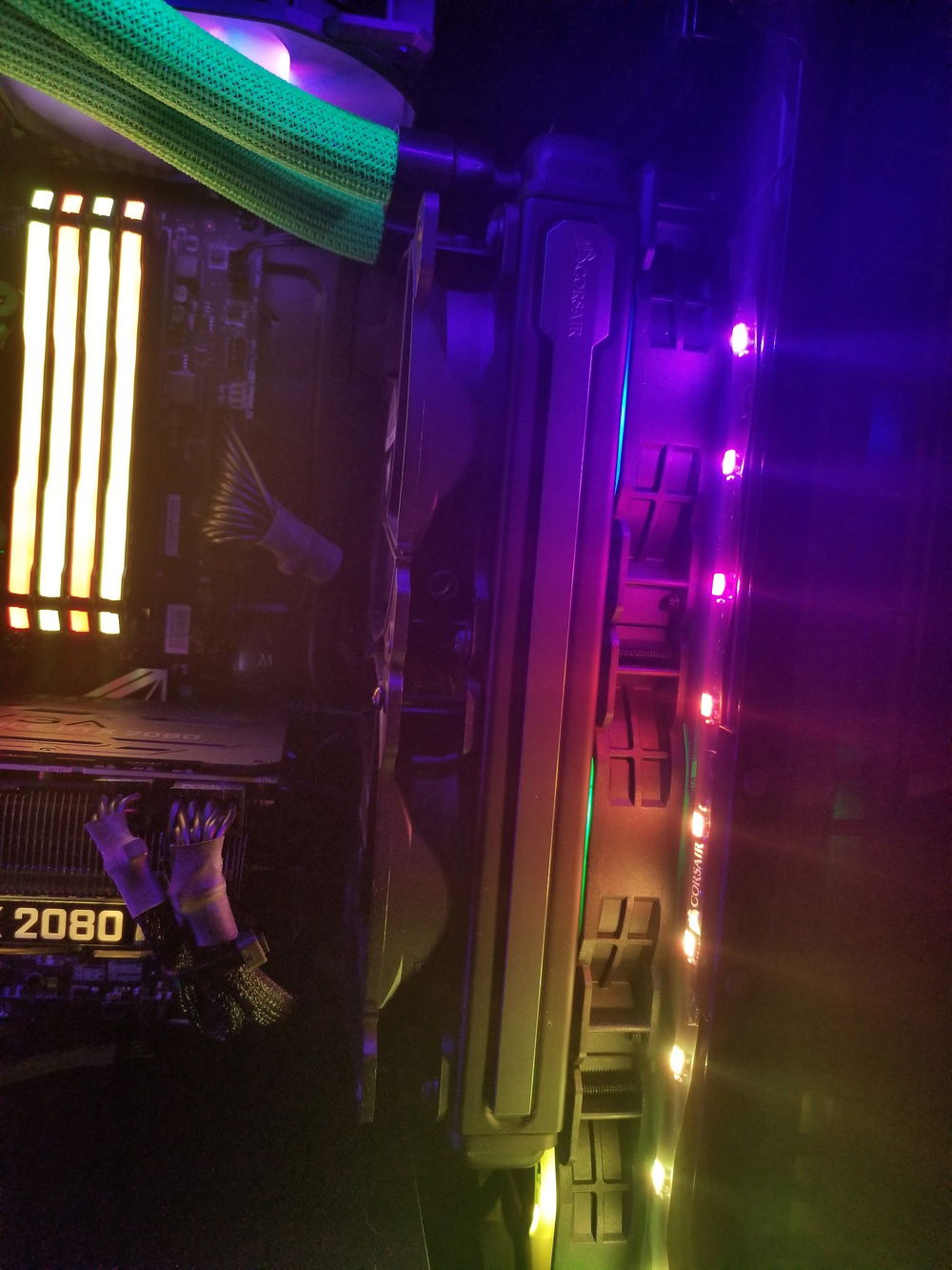 I'm very fond of LED and RGB lighting, so there's a lot of it inside the build itself, and also in the other aspects of the build (peripherals, ambient lighting, my desk, etc).