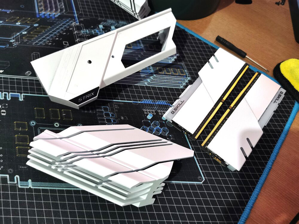 Painting the motherboard and memory heatsinks/heatspreaders.