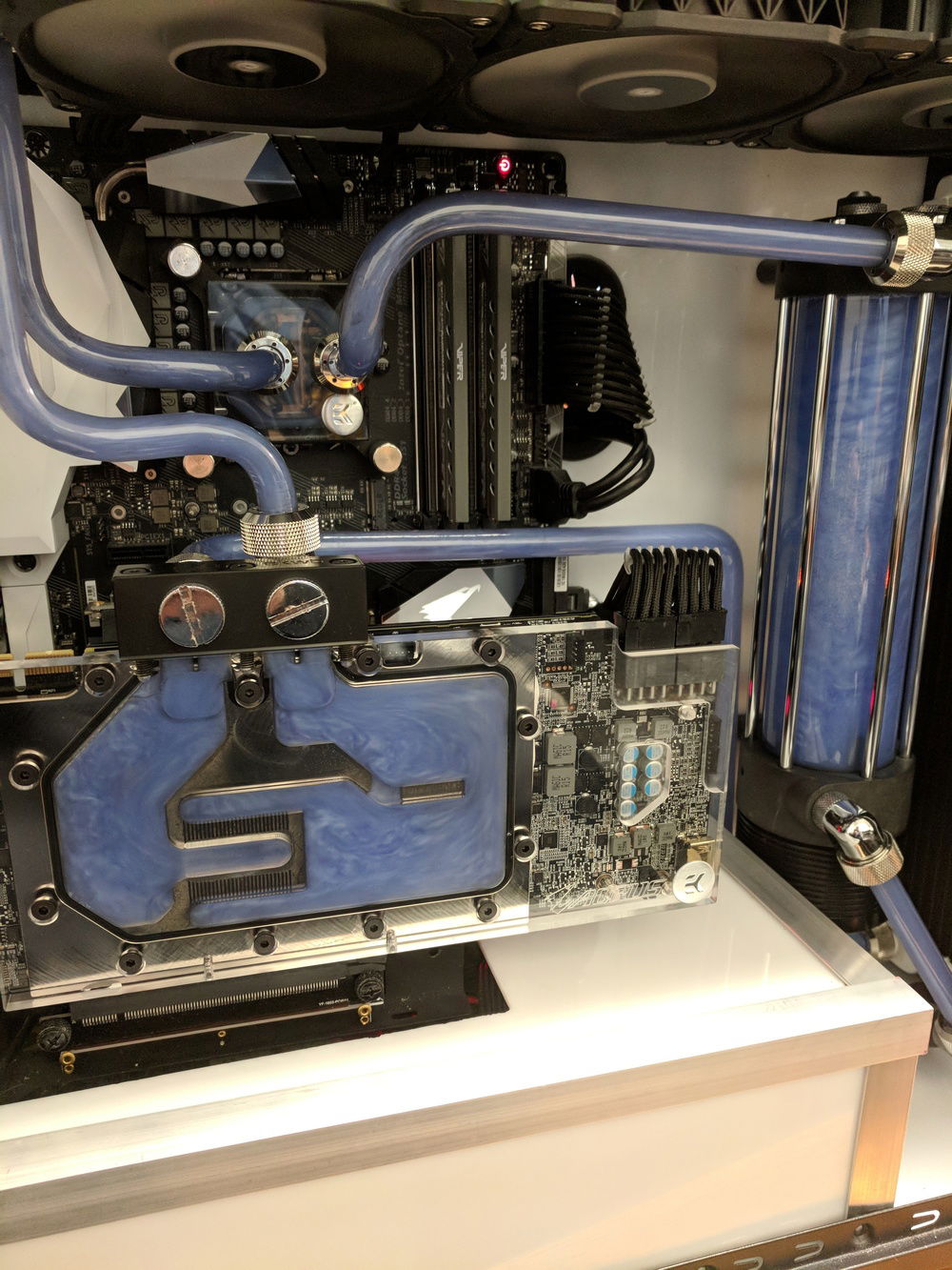 This is my first water-cooled build. I delidded the CPU and lapped the IHS at the same time because I had nothing to lose at by doing it. I was going for a clean look for my build. The build is now about 2 years old looking to do an update build next year or so whenever 2nd gen rtx cards roll out. I have been using primochill vue fluid in my build for the past year now without any issues. But I remove the fluid every 3-4 months and clean everything. It is not necessary and i do it more because I want to. I have been lucky enough to not have noted any abnormal build up or blockages from the fluid.