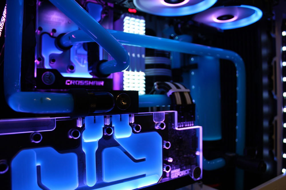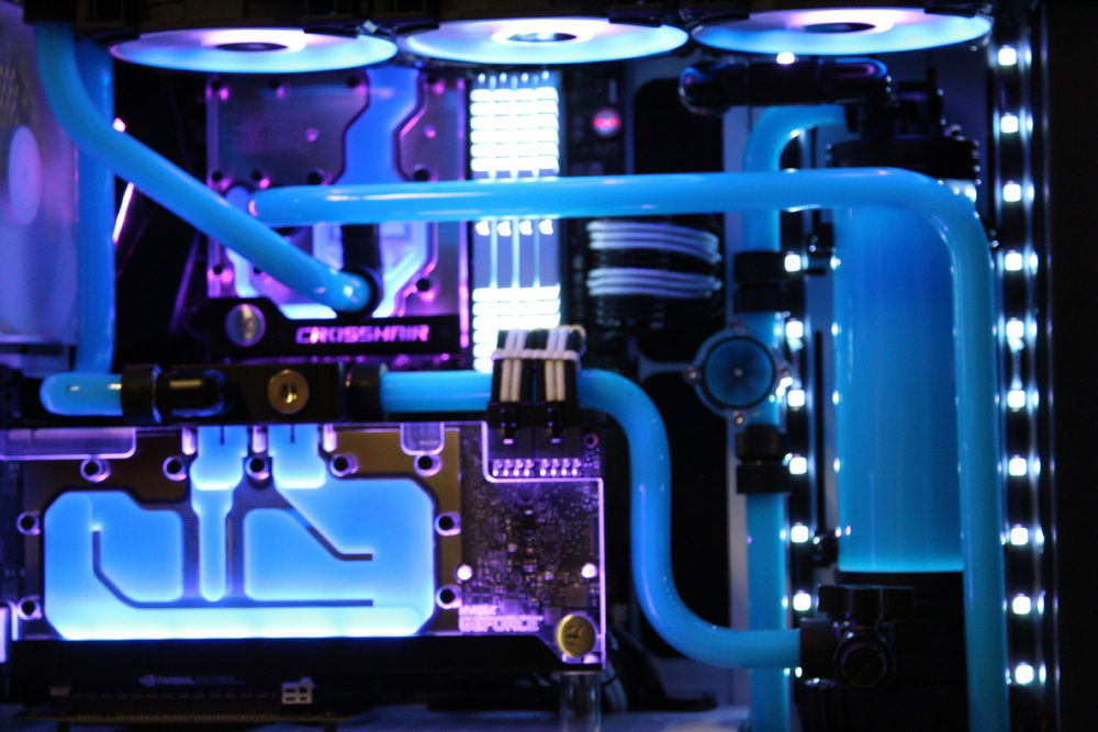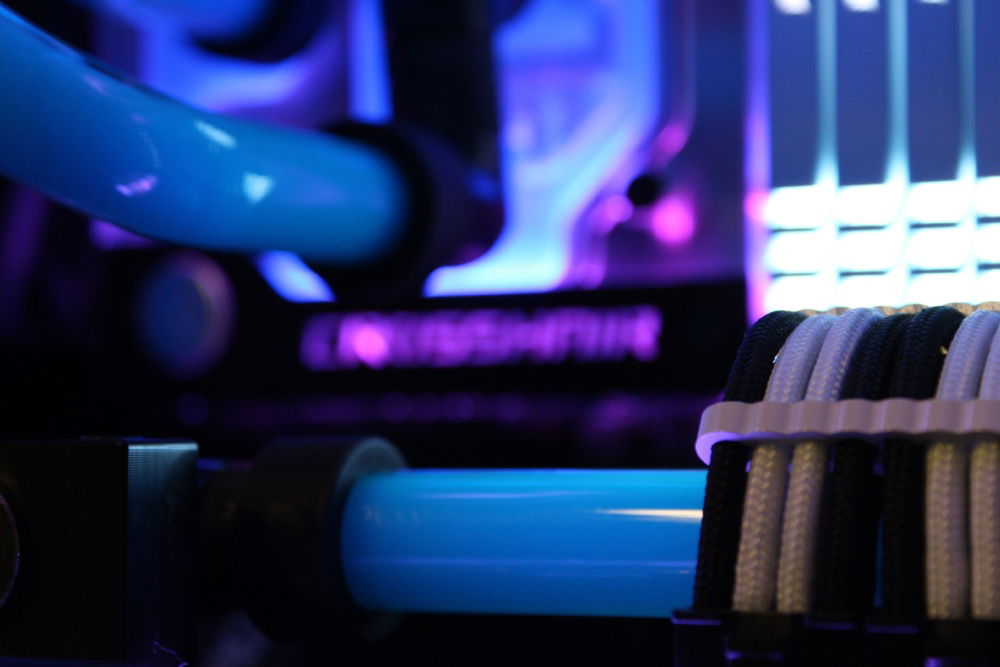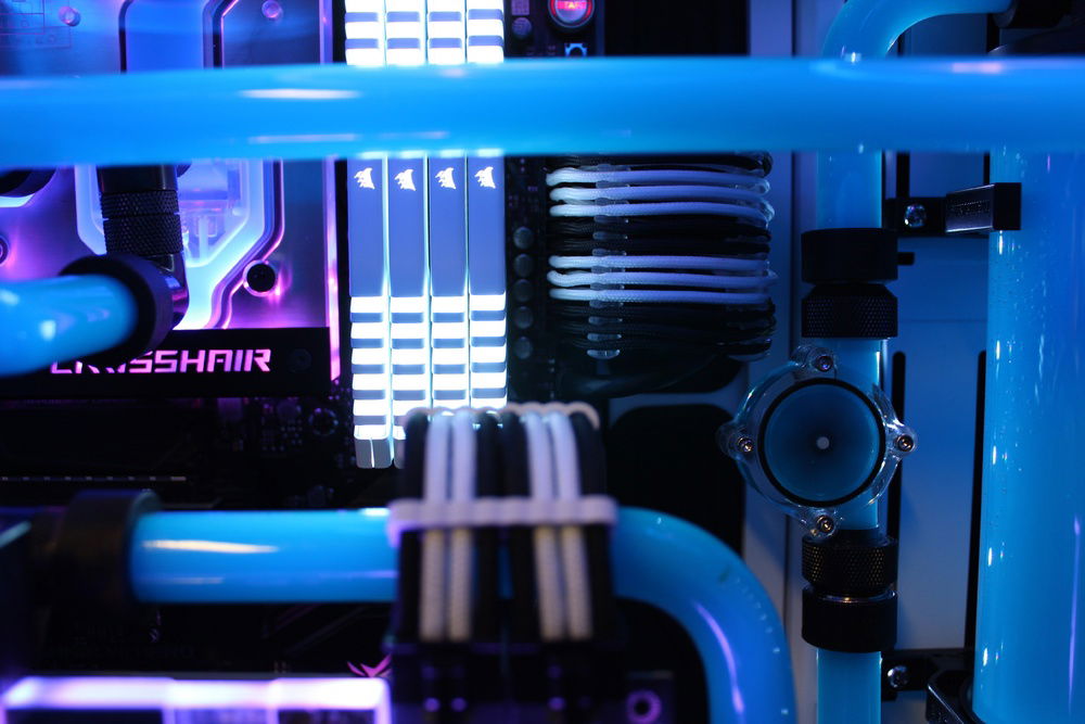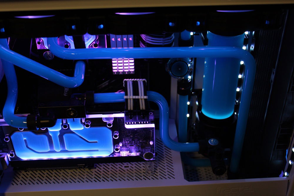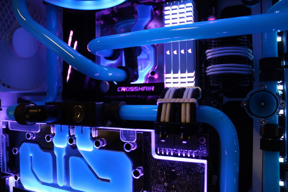 Recently decided to build my first PC so I figured, why not go nuts off the bat and give hardline a try. Far from perfect however I am super happy with the overall appearance. I wanted to go for a retro color scheme. Pictures don't do it justice but the blue/pink gives it the look I was shooting for.