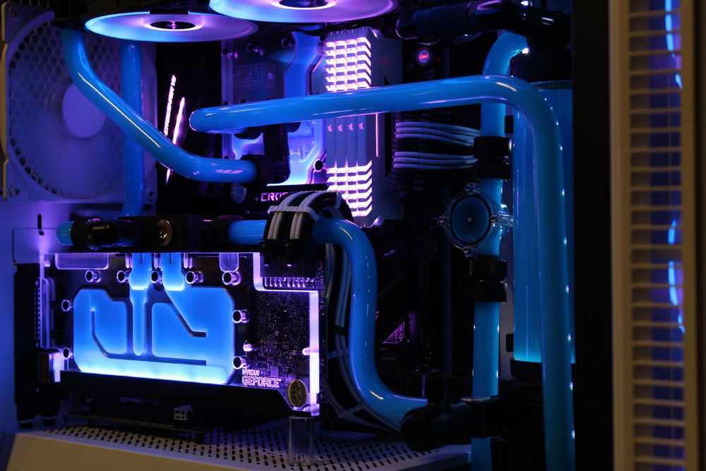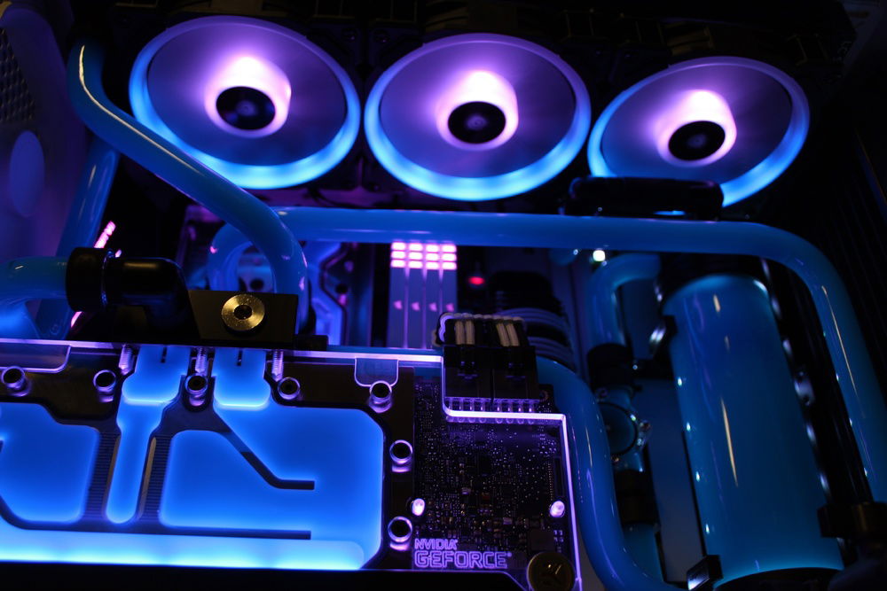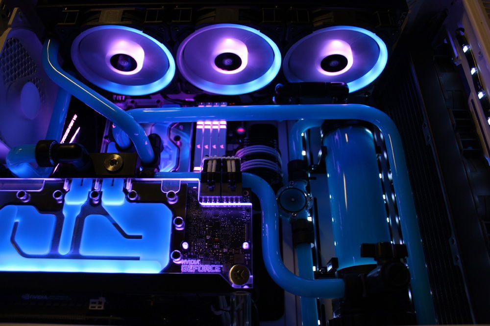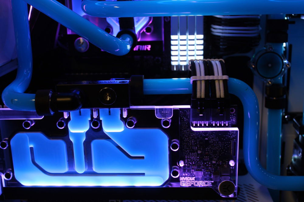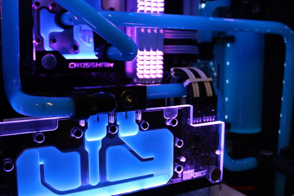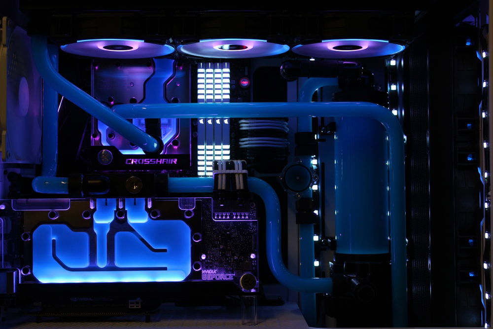 Recently decided to build my first PC so I figured, why not go nuts off the bat and give hardline a try. Far from perfect however I am super happy with the overall appearance. I wanted to go for a retro color scheme. Pictures don't do it justice but the blue/pink gives it the look I was shooting for.
