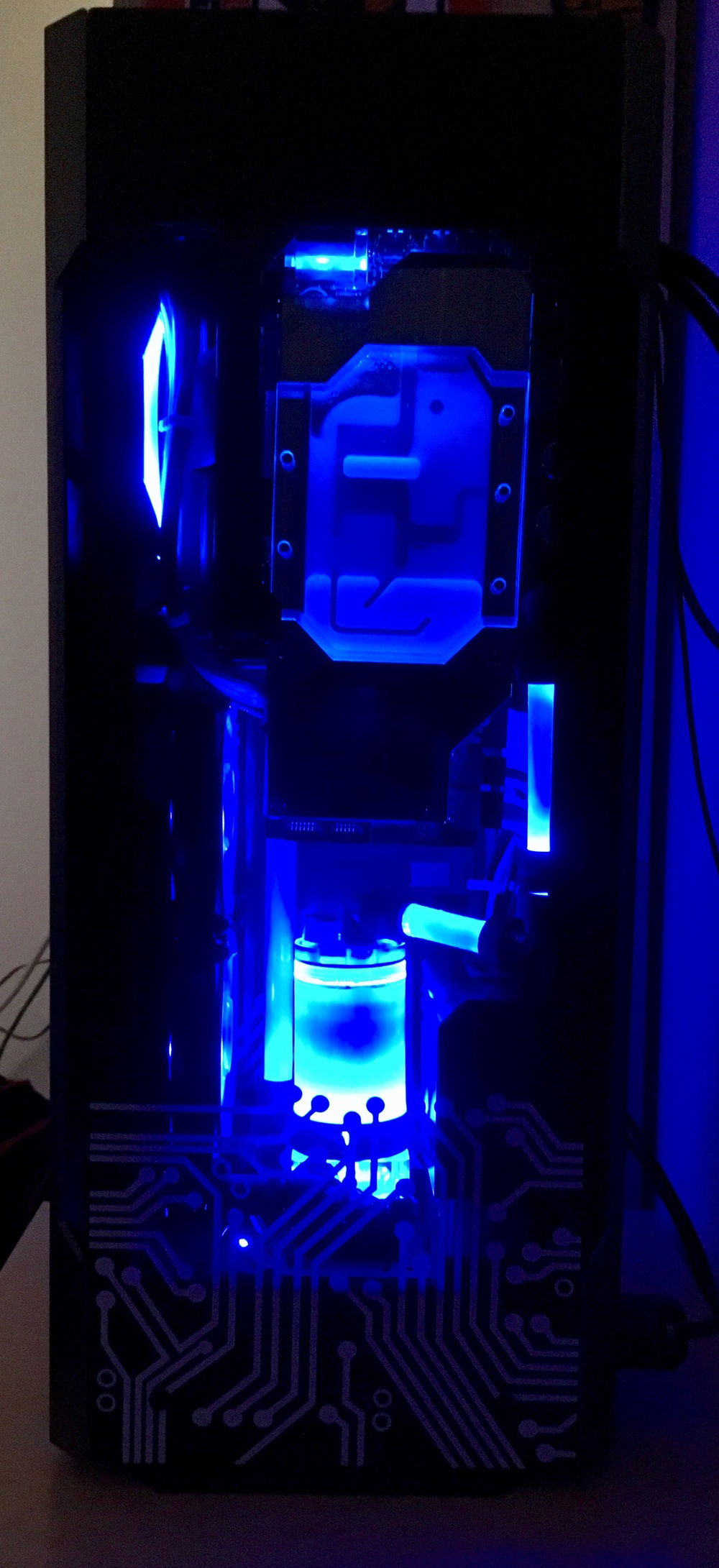 Lighting: Thermaltake RGB fittings, NZXT AER, MLB on-board, case lighting, GPU ASUS Aura (Pictures are all blue, but lighting is RGB.)
