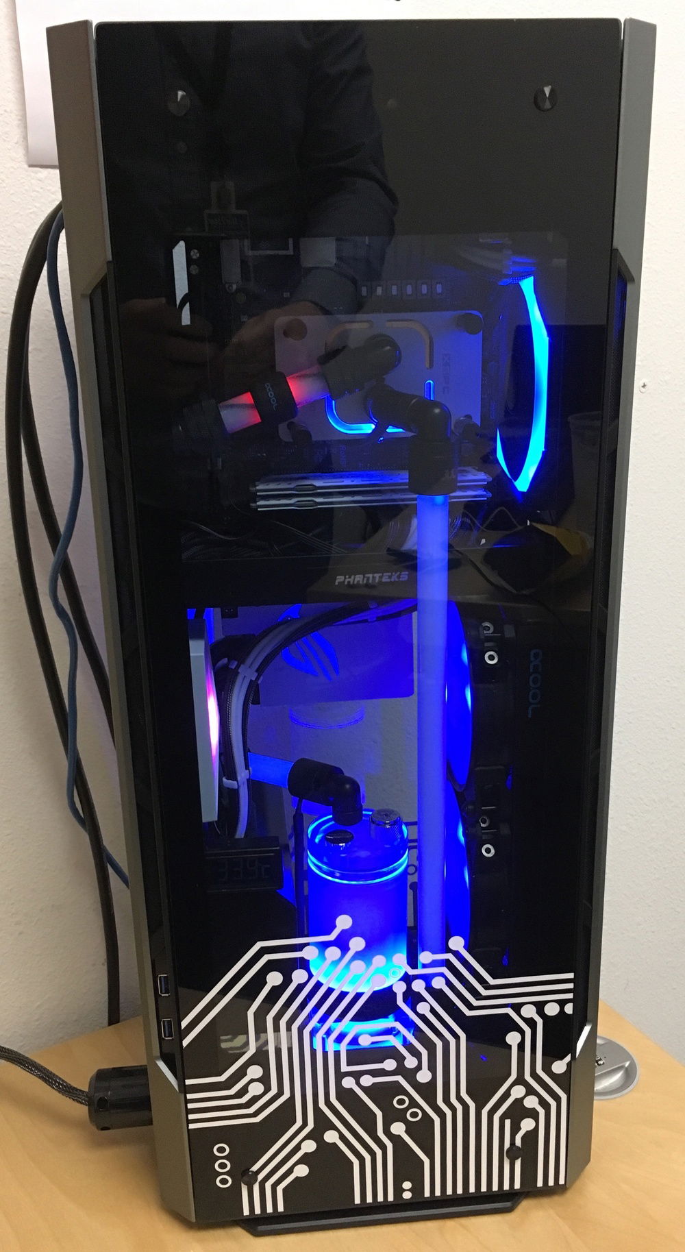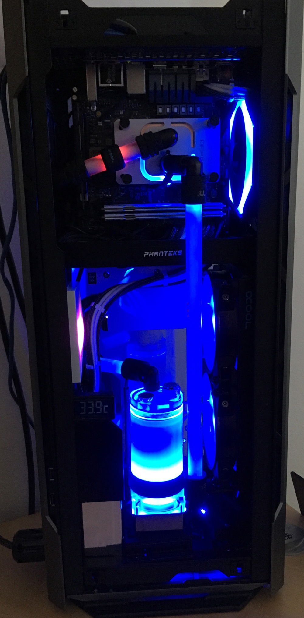CPU block: XSPC GPU block: Phanteks chrome 1080 Reservoir / Pump combo: Bitspower 100mm Pump: Alphacool DDC Fittings: Phanteks, Thermaltake, Alphacool, Bitspower, EKWB, Barrow (whatever matched and fit where needed) Tubing: Thermaltake