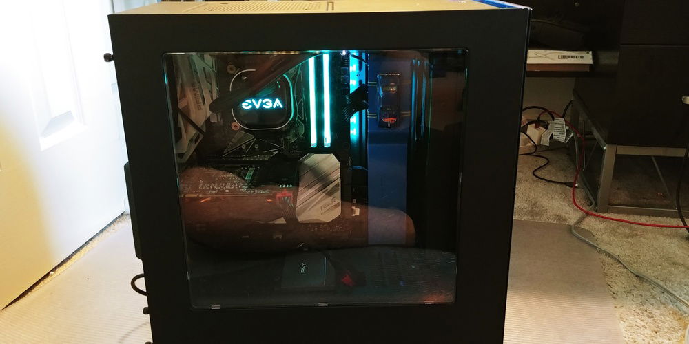 My build so far has a i5 8600k overclocked to 4.8 GHz, a EVGA CLC 240 Liquid/ Water CPU Cooler with RGB Lighting, a Rx 480 MSI afterburner edition, on a ASUS Prime Z370-A motherboard with RGB lighting, with 16GB of GeIL Super LUCE RGB SYNC ram, A PNY 480gb ssd boot drive, a 2 tb 7500rpm hard drive, a 650 w Thermaltake PSU, and finished A NZXT S340 matte Black/ Blue Steel ATX Mid Tower Case