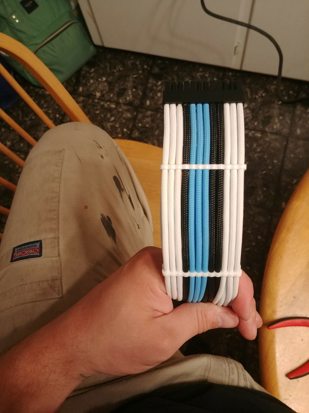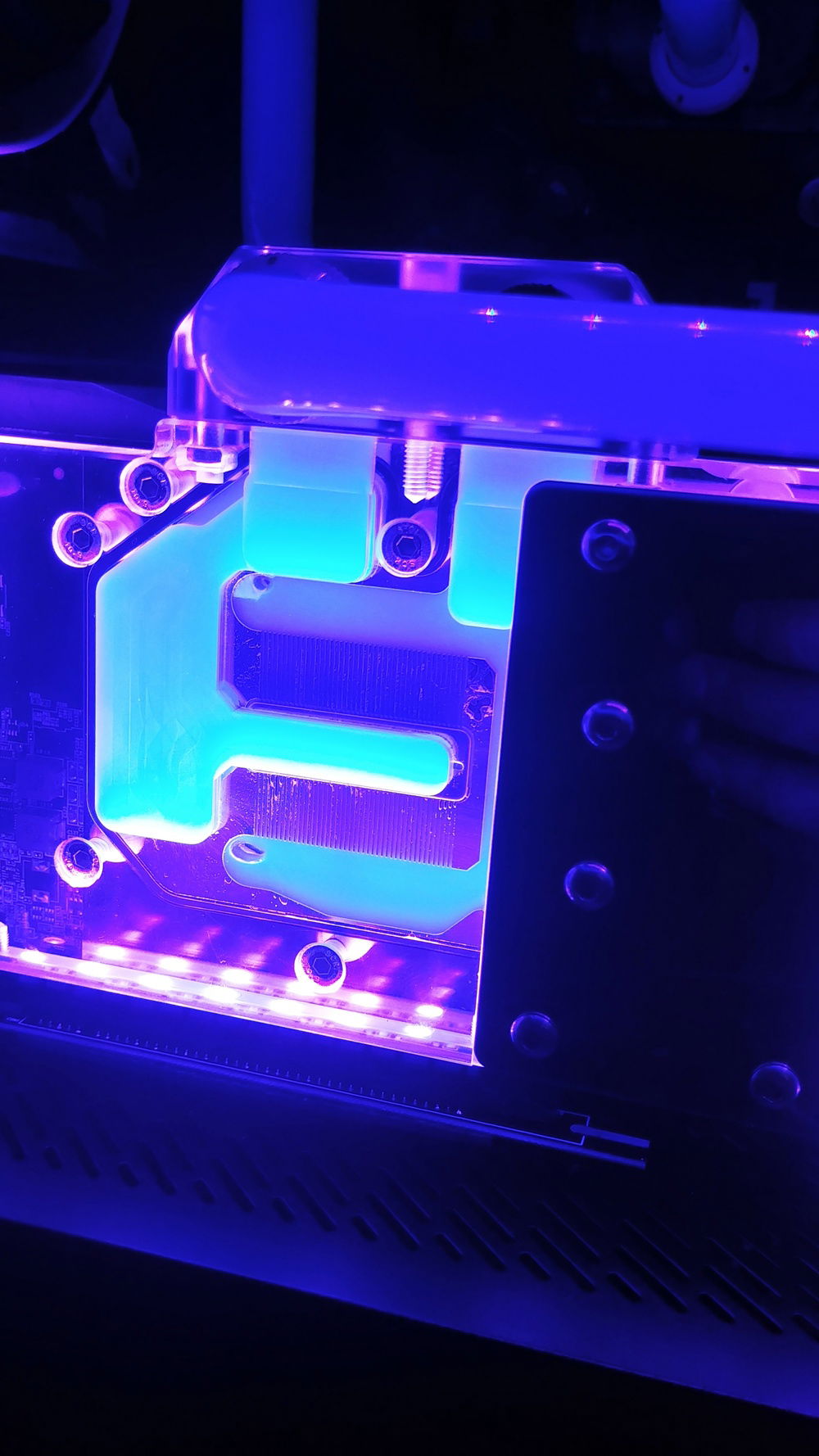 This is my first PC build ever. I've been wanting to build one for years, and learned an enormous amount from watching youtube. It didn't start out custom water-cooled, and I've gone through various hardware configurations since I originally built this back in March. Slowly settled on the hardware I'm running now, and not quite done yet with mods and odds and ends. I'm very happy with how my first attempt at a hard line custom loop came out, absolutely no leaks from jump! From all the possible water-cooling configurations I've seen, I wanted to build my own loop consisting of two oversized radiators BETWEEN the components. So: GPU, then rad, then CPU, to rad, back to pump. It works amazing, in my GPU overclocking attempts the temp never reached higher 40-44 Celcius and power is always my only limiter. The CPU still hits temps as high at 65-70 under synthetic loads, which I think has to do with my extremely cheap copout with a noname CPU block off eBay. All parts are copper/brass with some nickel plating, absolutely no aluminum.