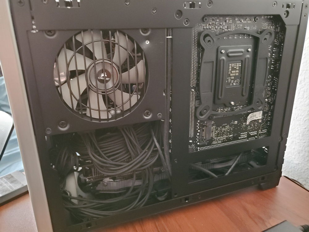 9900k with a kraken x53 240mm AIO. Asus z390 strix itx motherboard 32gb of gskill trident z royal silver 250gb m.2 Samsung evo(boot drive) 2tb sata Samsung evo(secondary drive) Corsair sf 750 platinum power supply Evga 2080 super xc ultra graphics card Ncase M1 v6.1 silver