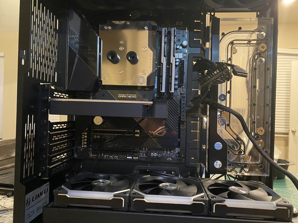 Pay no mind to the cable spaghetti. All that is going in the trash soon. I just wanted to throw it together and make sure i was able to boot, plus I was waiting on a shipment from EK and Cable Mod and just couldn't wait any longer.