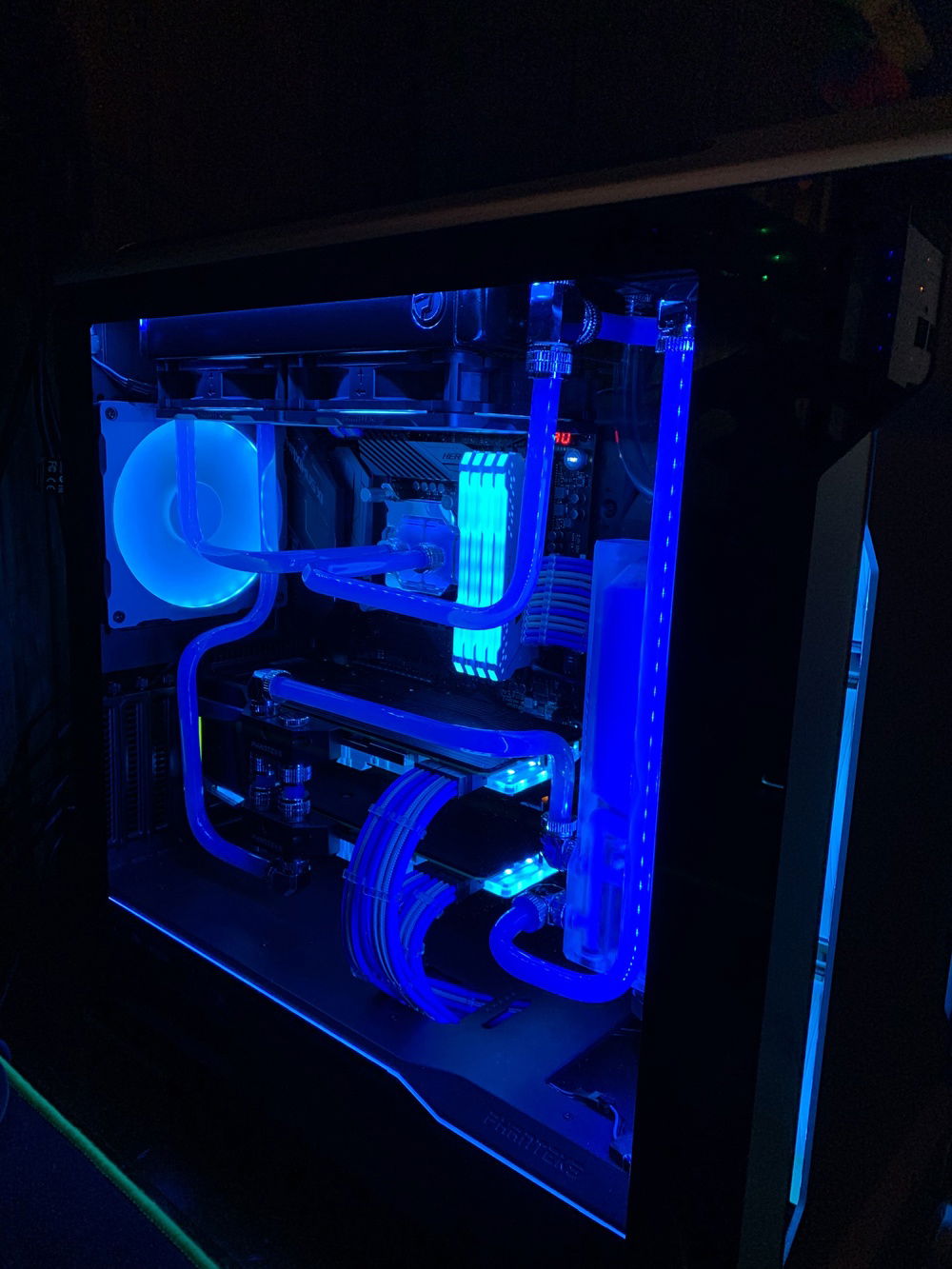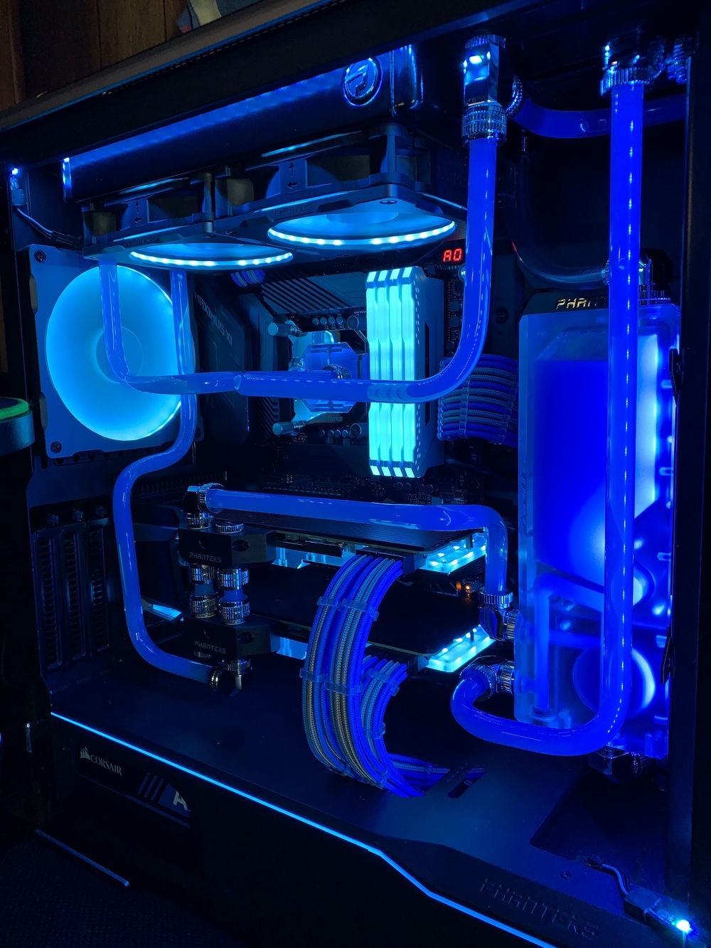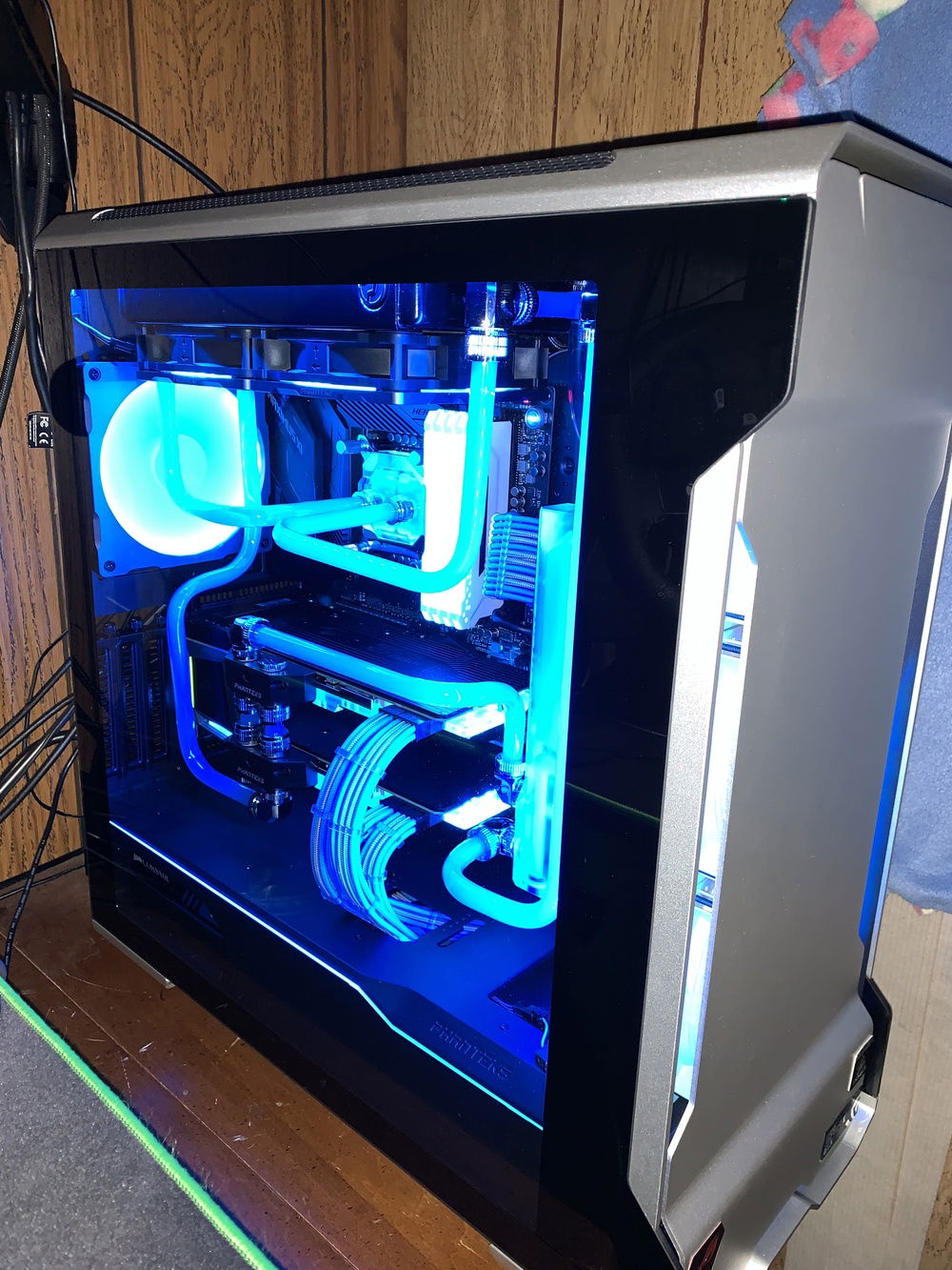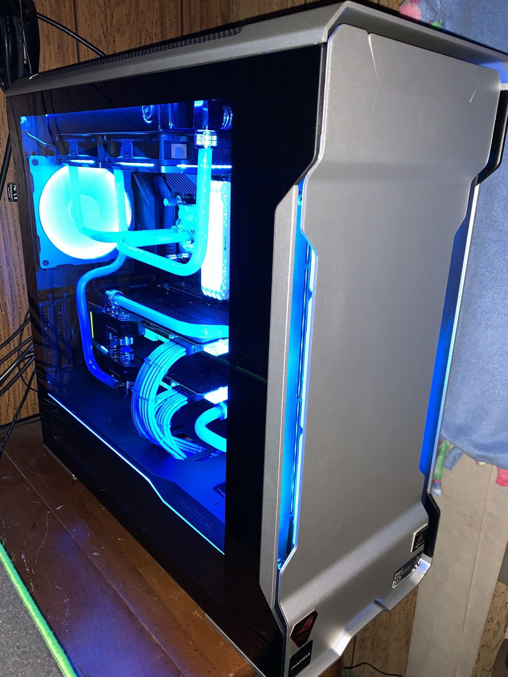 This is my first custom water cooled build. I wanted to use all Phanteks parts that I possibly could. I used some parts out of my 2 year old Alienware PC Area 51 Desktop R2. I mainly just used some drives and my fairly new graphics cards. All lightly used and very new. However the graphics cards are GTX as I am not yet convinced about RTX and the new tech ray tracing. Plus my GTX cards are very new and lightly used. I simply converted them into liquid cooled blocks.