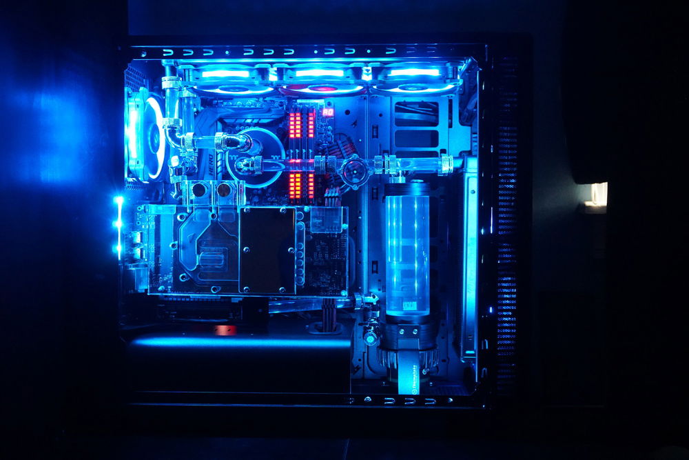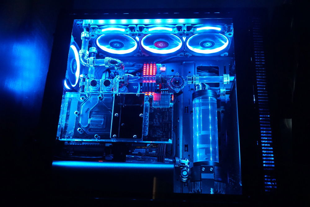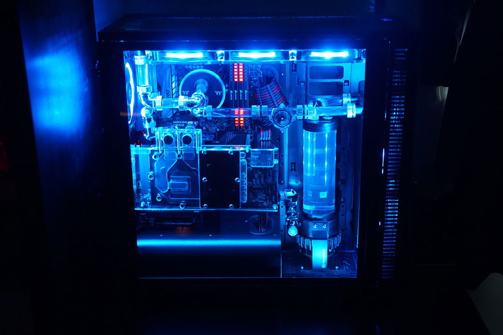This was my first go at a full custom water loop PC. A friend of mine convinced me to post this on the site. Although a lot of the parts are older than what you can currently get this rig still performs like a beast. It has been upgraded three different times. From being air cooled, then to AIO's, and now in its current state with a full open loop. Hope you all enjoy.
