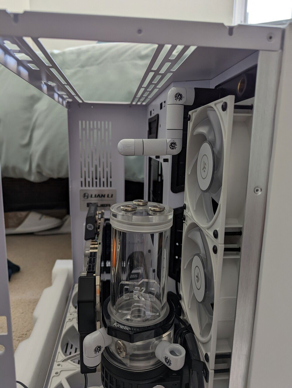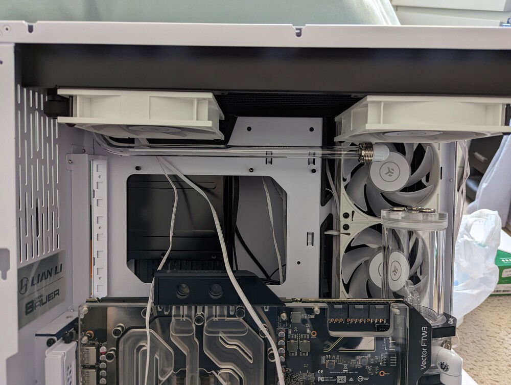 Custom Water Loop consists of EKWB blocks with PrimoChill Rigid Tubing. There is a mix of Bitspower and PrimoChill fittings.