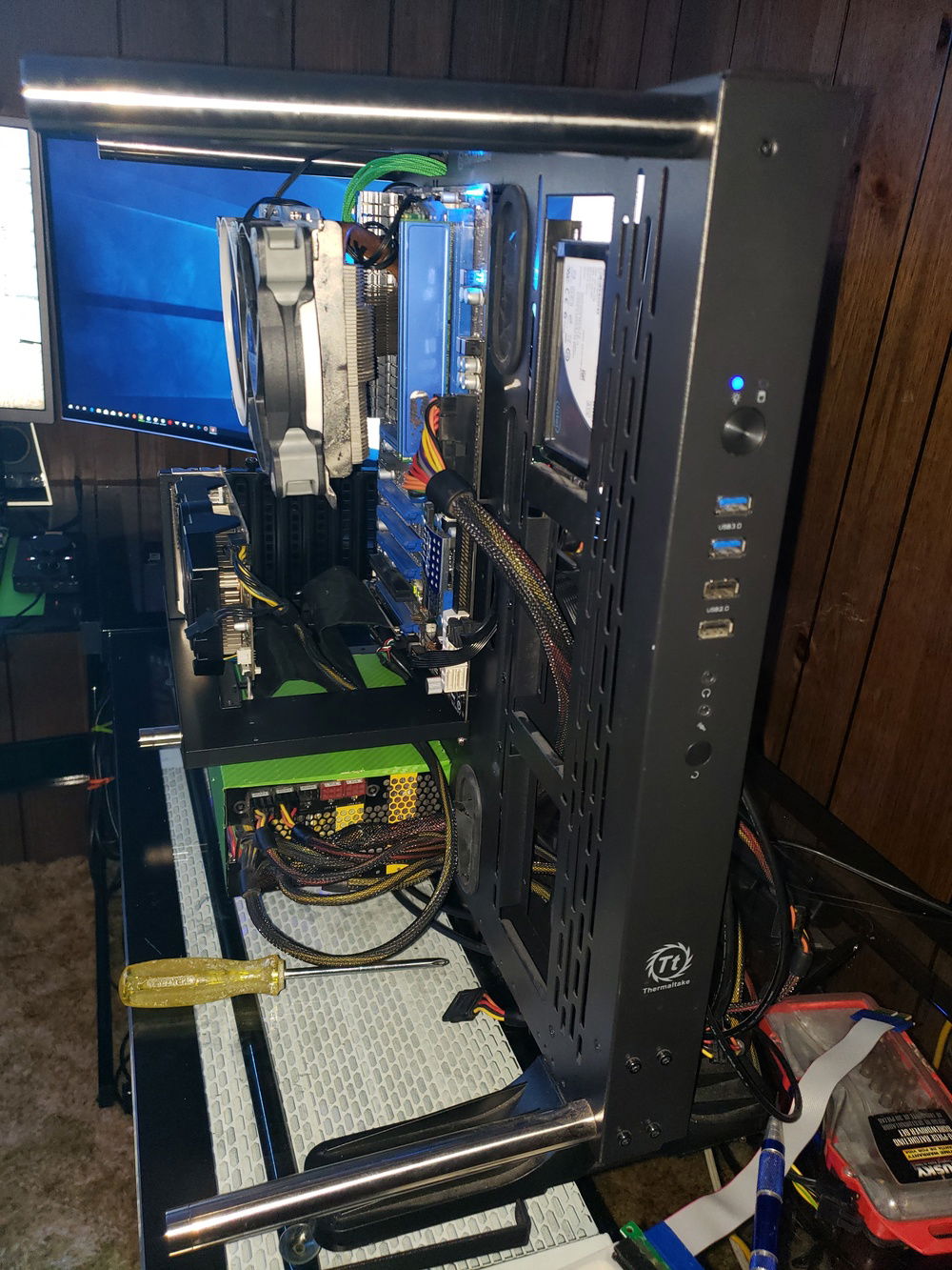 Thermaltake core p3 case MSI 890fxagd70 motherbaord 8gb of ddr3 ram 40gb ssd AMD 955 quad core CPU cooler master geminii 2 plus cooler AMD radeon r5 260x 2gb GPU this build is my streaming and plex PC
