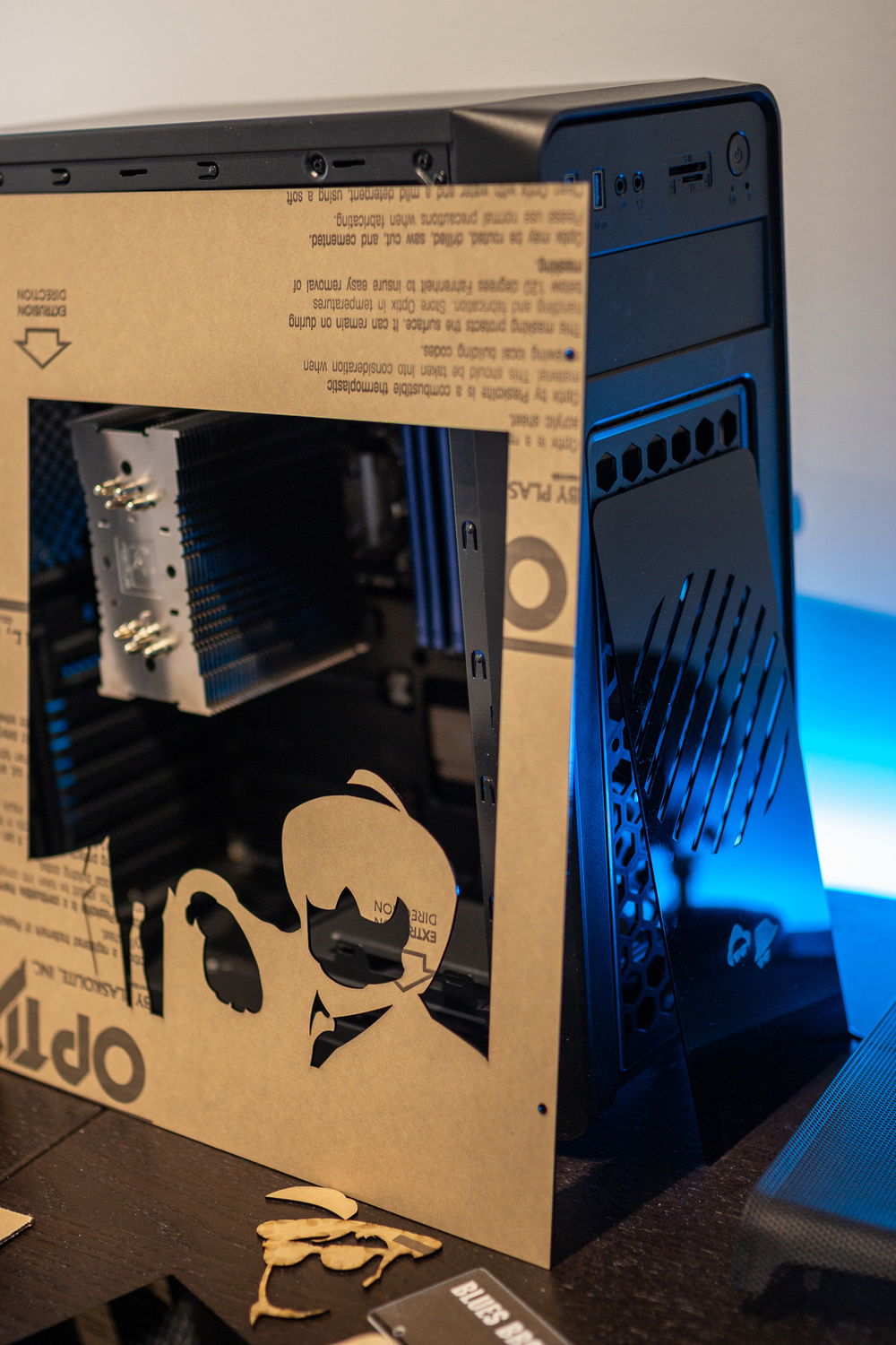 This was my first attempt with laser cut parts. The side panel is completely custom, as well as part of the front panel.
