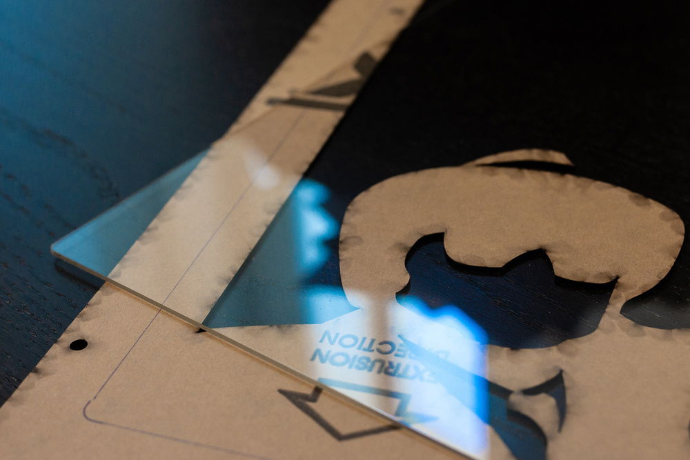 Laser cut custom side panel, 3mm black acrylic with 3mm clear acrylic window.