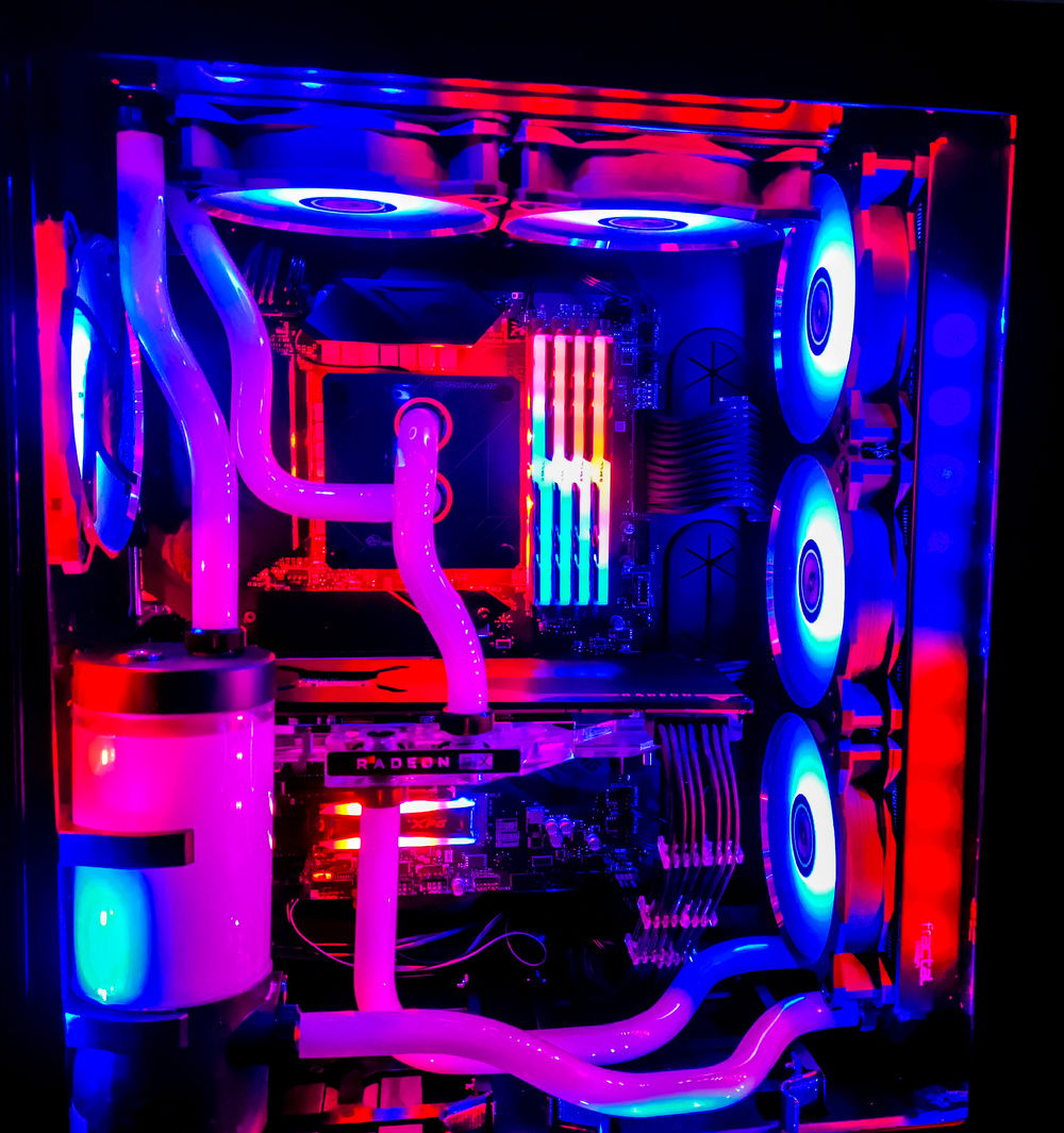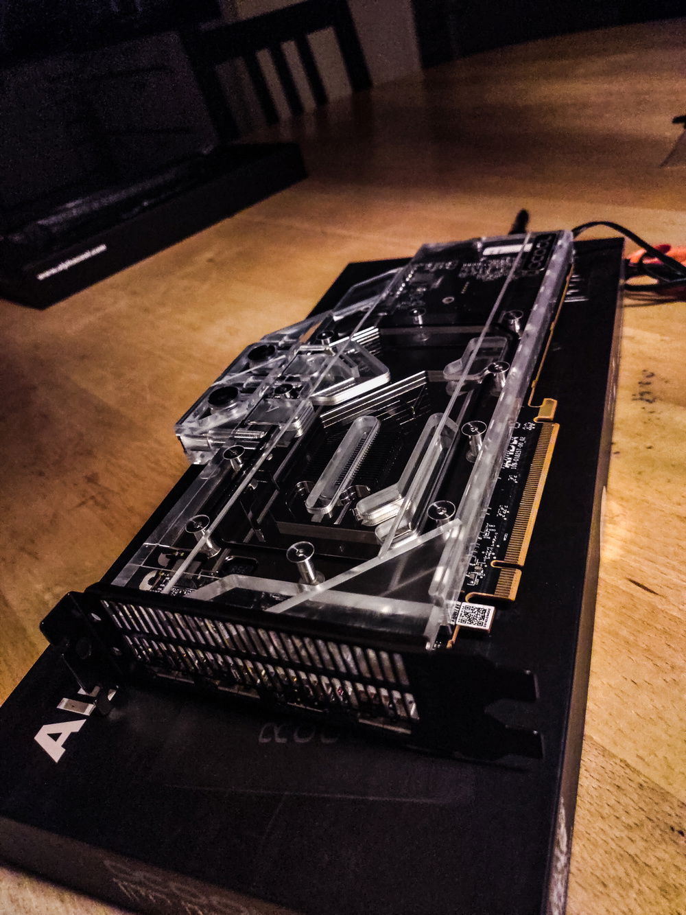 Alphacool full Block for my gpu, alphacool 360x rad, magic cooler 240 rad, magic cooler pump and ress, bitspower 16mm hl fittings, EK 16mm petg tube, and EK cloud white solid coolant,