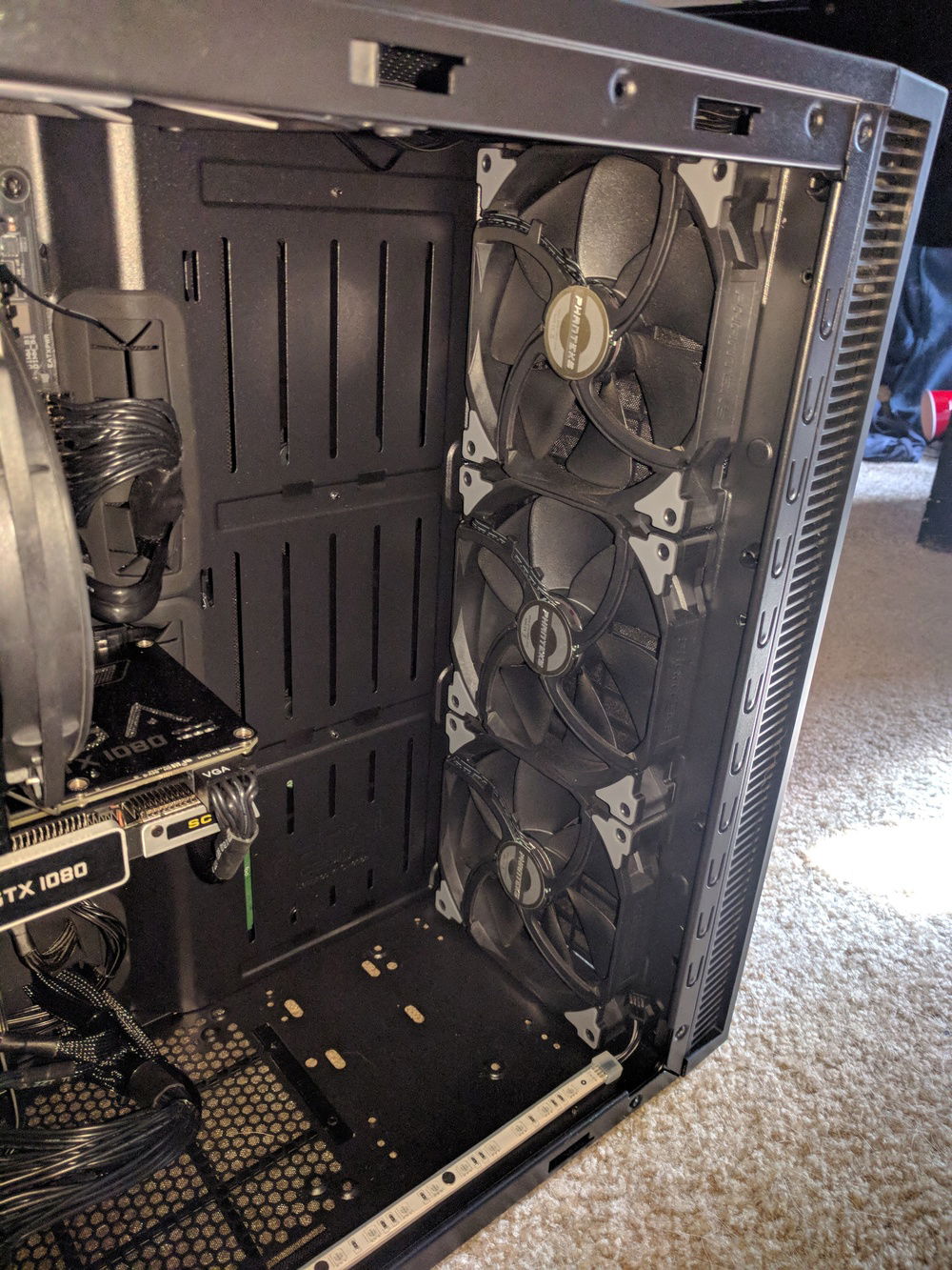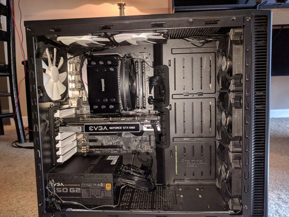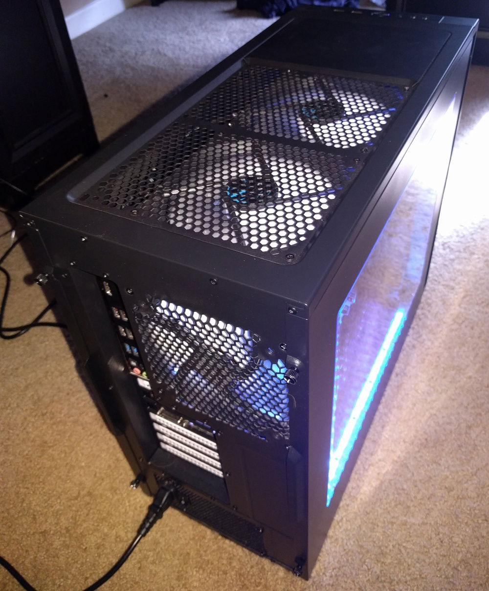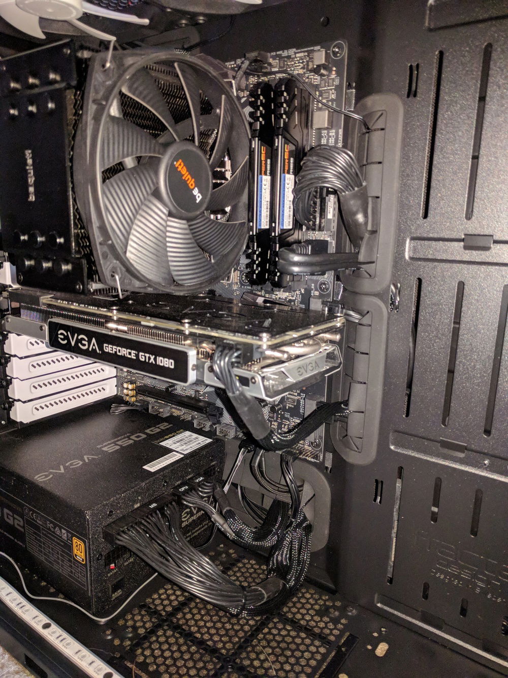 I built this for my brother around spring of 2018. He was rocking an FX-6300 and r270 previously. It was time for an upgrade. Case was bigger than expected! The idea behind it was to go blackout, with optional RBG. Imgur/PcPartpicker links below!
