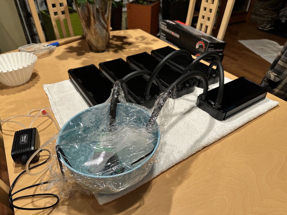 Tubing done. It was extremely difficult to get the side 360mm in with tubing in place as I’m not going to be able to reach in there after the rad is attached to case.
