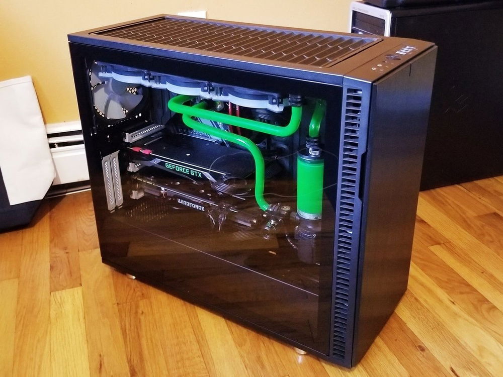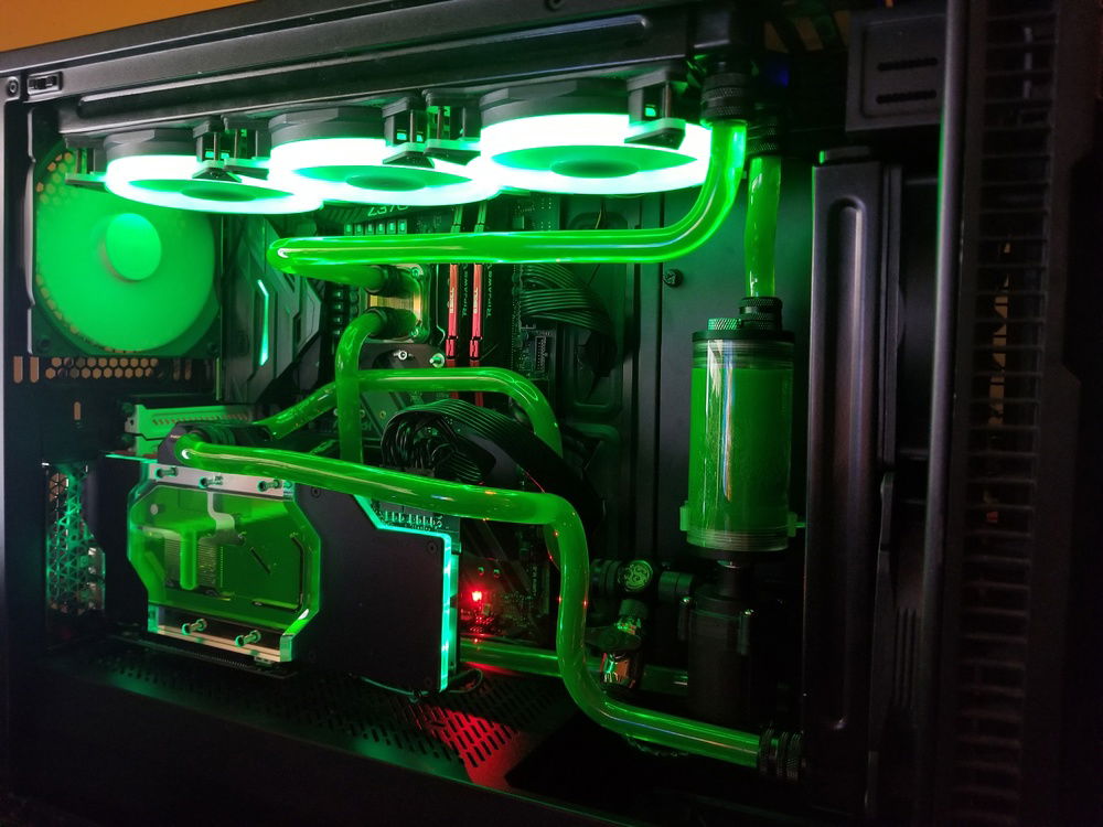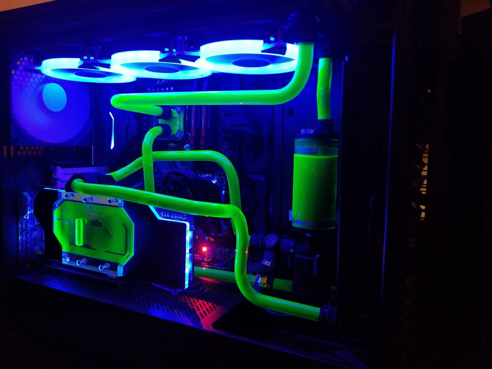 i7 8700k @5Ghz, G.SKILL 16GB 26666 (2800oc), custom budget watercooling from ebay and local plumbing supply shop cost a total of $98 (8 months going strong) all in a Fractal define R6