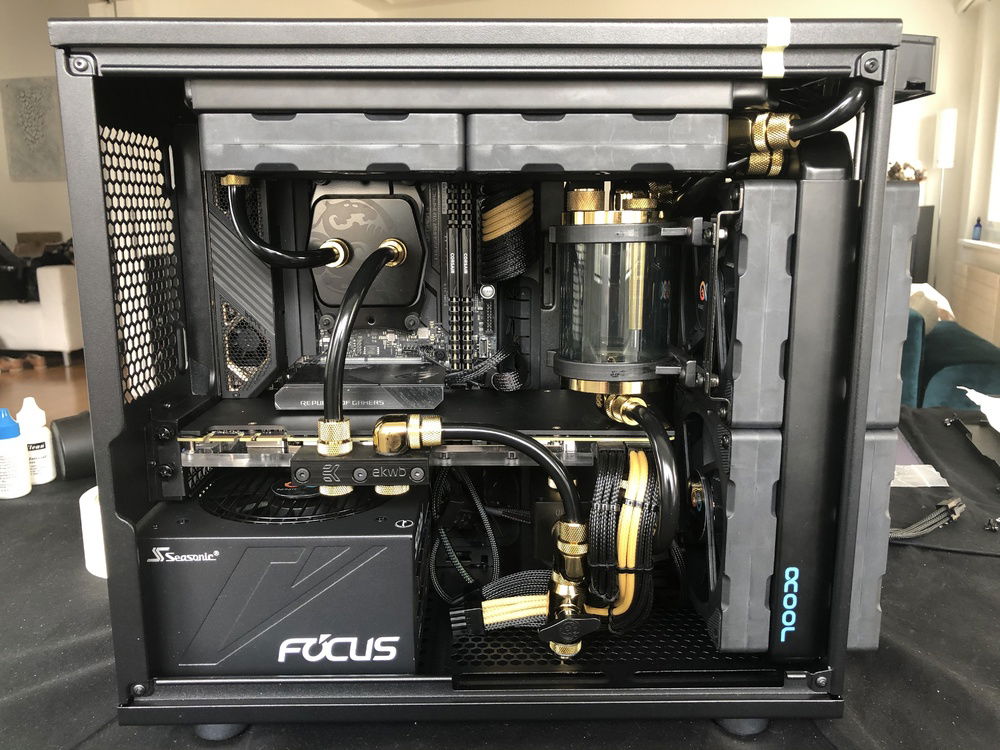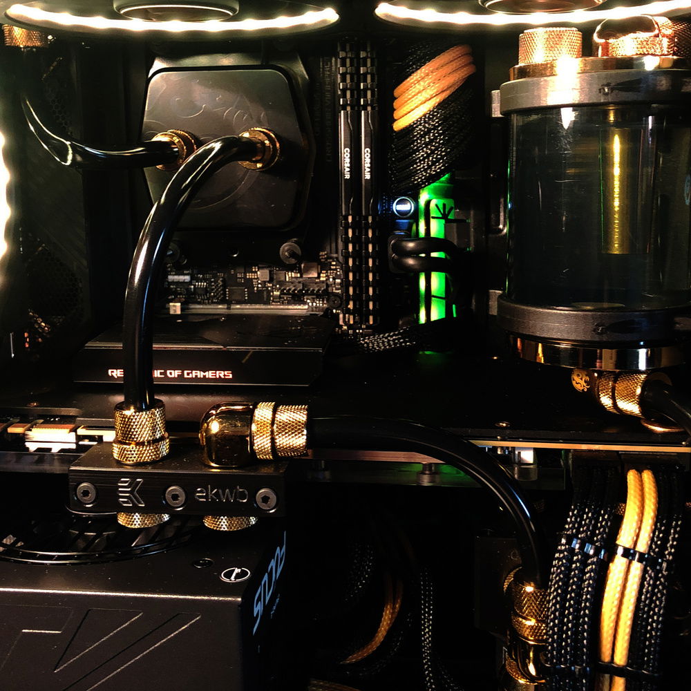 All the water cooling parts arrived. I really think this gold/black theme looks stunnig. Parts used for the reservoir: