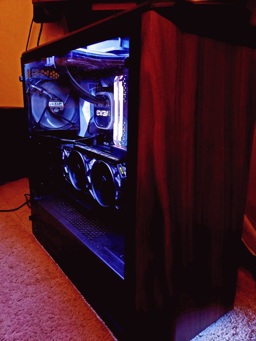 My second build after my old one started to poop-out. Did a vinyl wrap on the front panel because its closed off anyway and the vents at the top and bottom are unimpeded. I also painted the radiator shroud and the shroud around the cpu block to give the white more prominence in the build. Installed the cablemod vertical pcie bracket to fill the case more and it looks great, really adds a lot to the build. Just wish I had a black and white cablemod 24pin ;)
