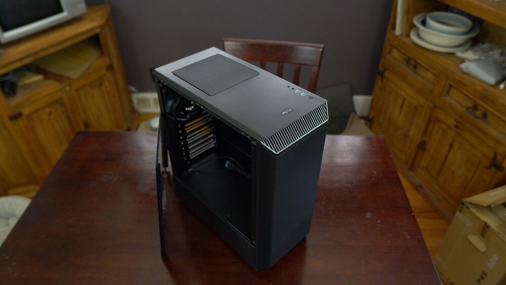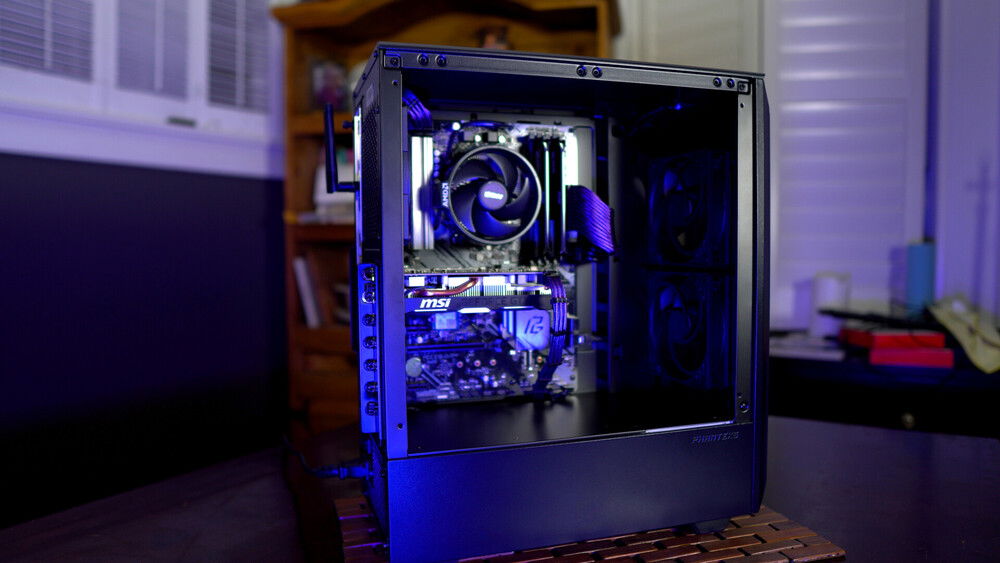 I recently bought the Phanteks P300A as Newegg was offering a ten-dollar rebate, lowering this $59.99 case down to $49.99. At either price it’s a helluva case that has more features for the price than almost any budget case I’ve looked at recently. It’s compact, stylish, and while there’s no USB Type-C port at the front, that’s not a problem since this motherboard doesn’t have a Type-C header.