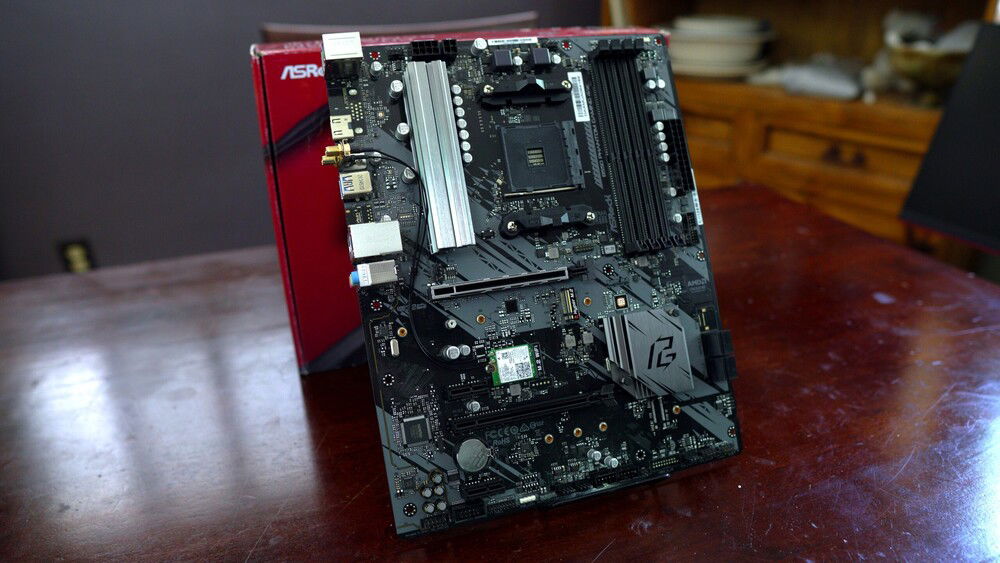 Next is the motherboard, and for this part I chose the AsRock B550 Phantom Gaming 4/AC. I purchased this for $124.99, but I've recently seen this on sale new for $89.99. It’s a lower tier B550 board in terms of power delivery and I/O, but it has enough features to make any budget builder happy including 6 USB 3.2 Gen 1 ports on the back, an m.2 slot, and 4 SATA 3 ports. Overall, the price to performance of this motherboard is bang on and I can’t argue with that current low price. Don’t need wifi? The non-AC version can be bought new for as little as $79.99 saving you even more money. If you want to spend a bit more for more features, then I recommend the MSI B550-A Pro motherboard. It has USB Type-C ports for the front and back, a more robust power delivery and a 2nd m.2 slot.