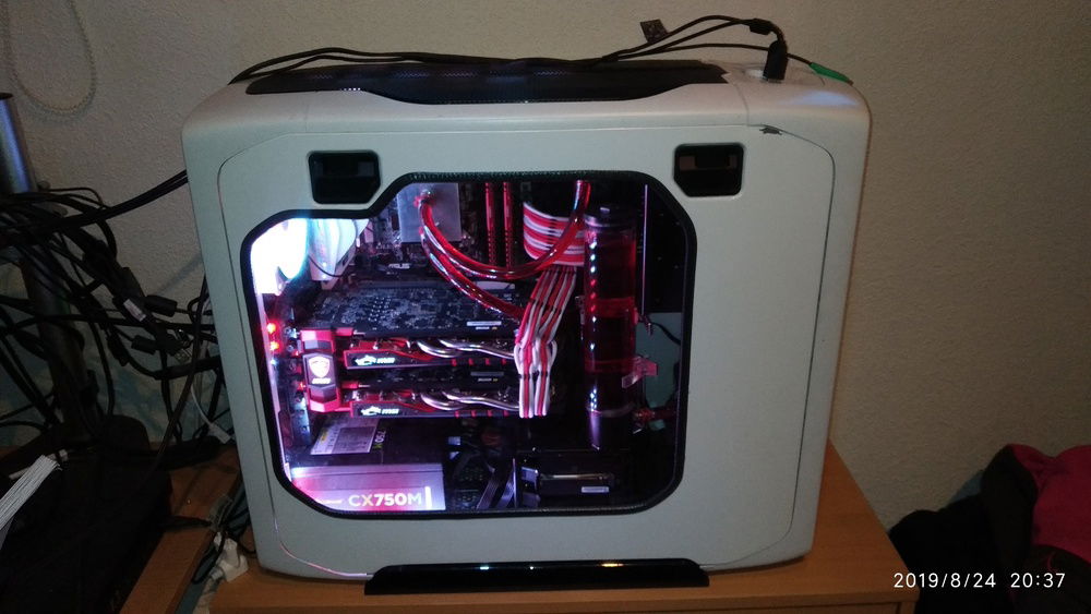 Custom loop, Side panel mod, custom sleeve. Homemade waterblock for the CPU.