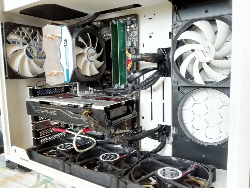 Overall it's a very nice case to work with and very little to complain - front panel power, LED and audio connection cables could be a little longer, the rubber washers on the HDD trays do little to reduce vibration, and the SSD trays behind the motherboard tray could use some 2 mm spacers because the SATA power connector gets a bit tight to fit ( the case comes with some washers for water cooling mountings so I used these). Other than that, excellent aesthetics, plenty of room inside to work with and very good airflow, especially for the GPU. I especially like the bottom air filter, which is removable from the side, not front or (the horror!) back.