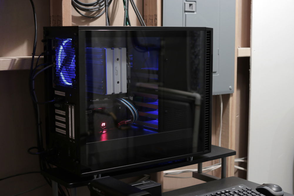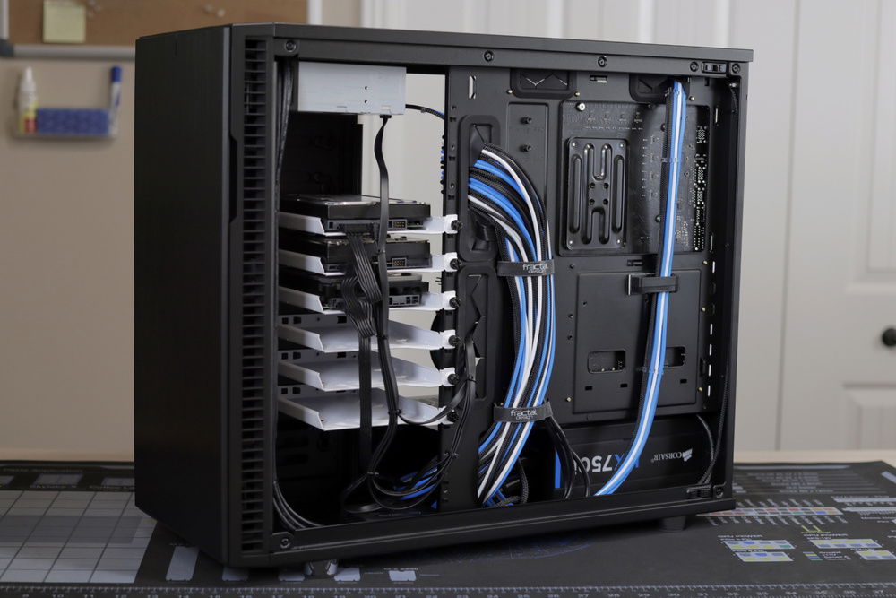 For the case I went with a Fractal Define R6. I went with it for one reason alone... 3.5" drive bays, it has a lot of them. Otherwise this case is overkill since it's sitting in my mechanical room and I don't really see it. Granted the window is nice to be able to see diagnostic LED's and the current temp without even turning on the screen. I would like to swap the Meshify S2 front panel on to this though.
