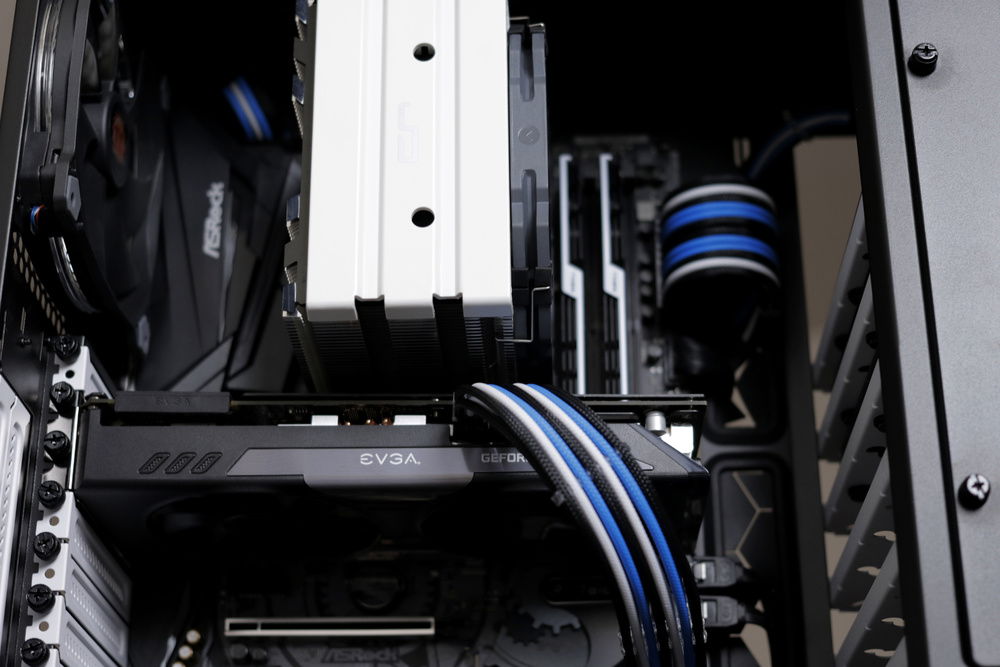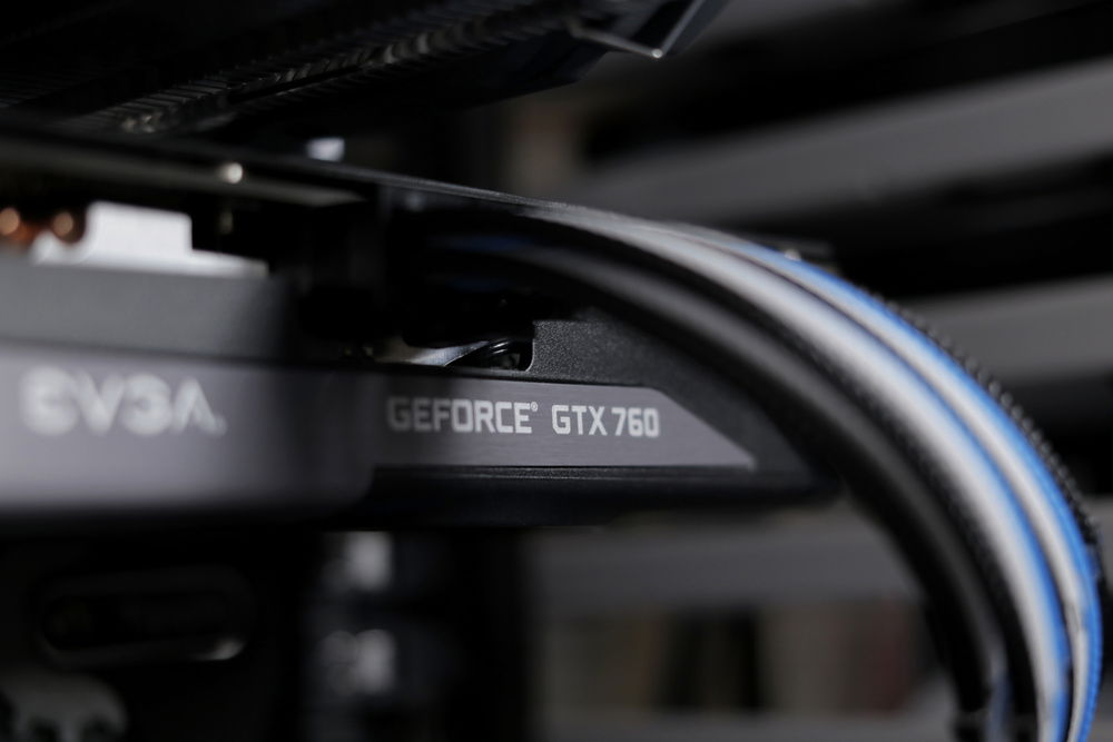 There's no integrated graphics on the 2600, and even if there were I wouldn't want it using system memory, I carried the EVGA GTX 760 SC over from the last build. I went with the 760 because it was cheap and is compatible with UEFI as well.