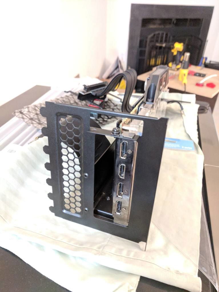 I ended up modifying it a little so I can mount the card on the front PCIe slot of the card mount.